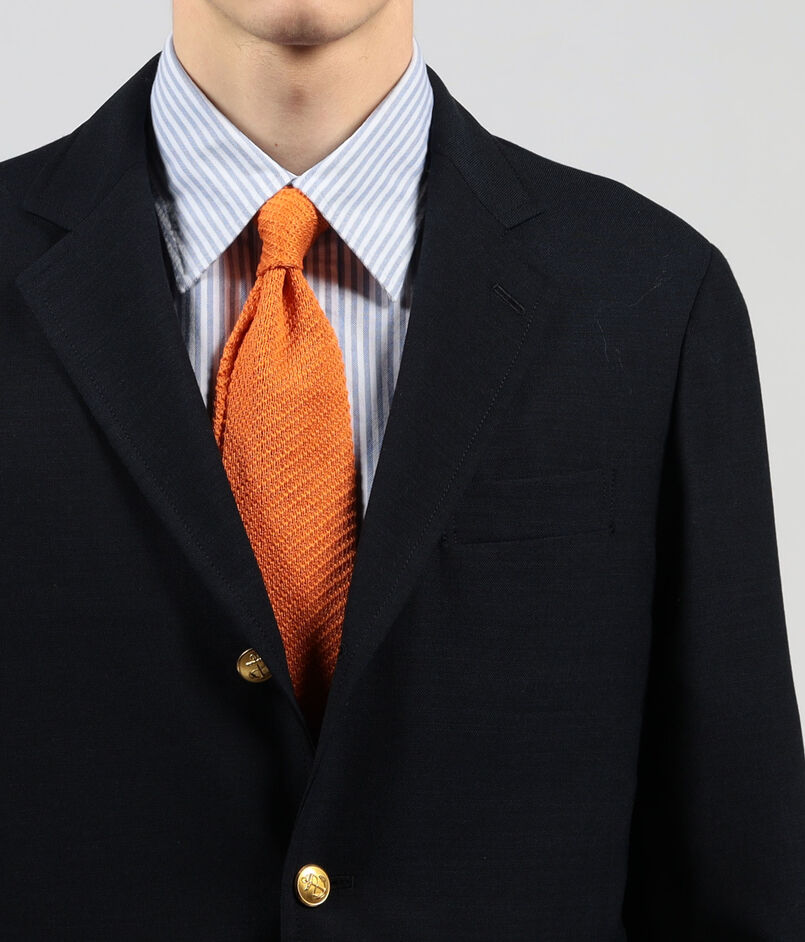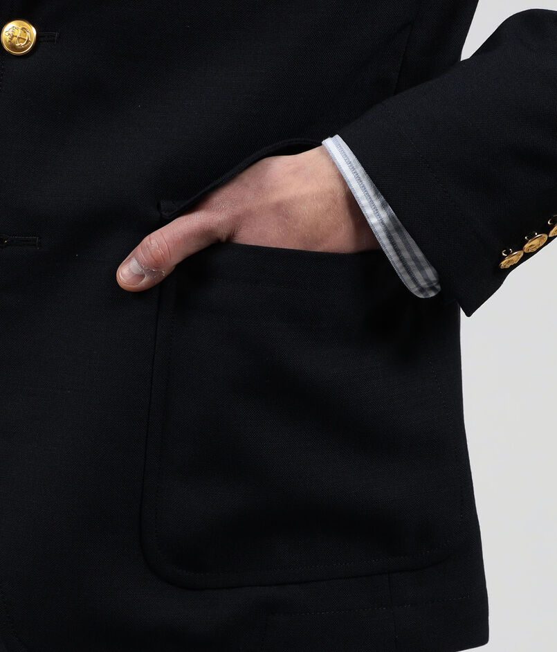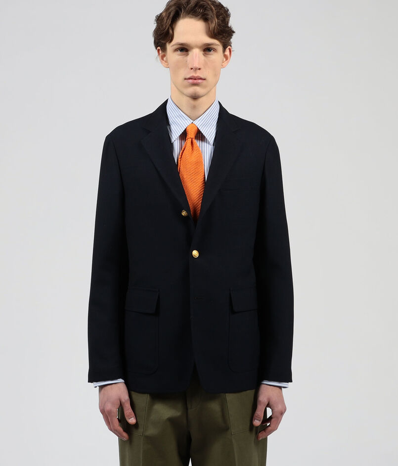 デザインは、毛芯仕立て+肩パット仕様のアイビーブレザーをアップデイトさせています。