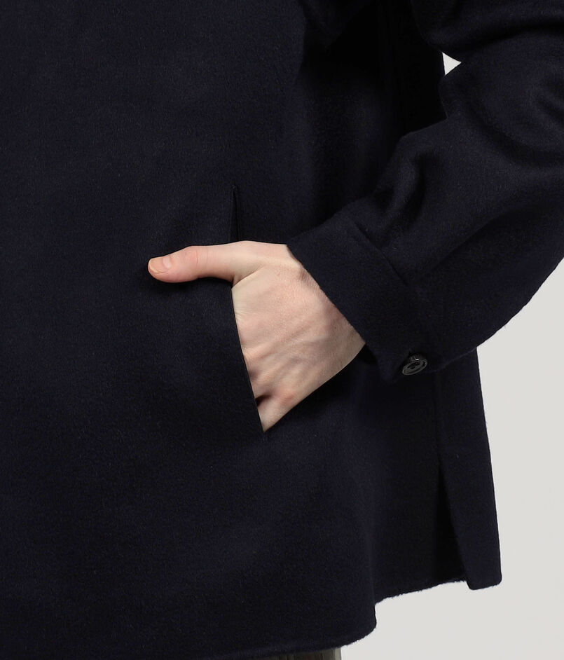 ジャケットよりも着丈を長くしており、アウターとしての保温性も十分に備えています。