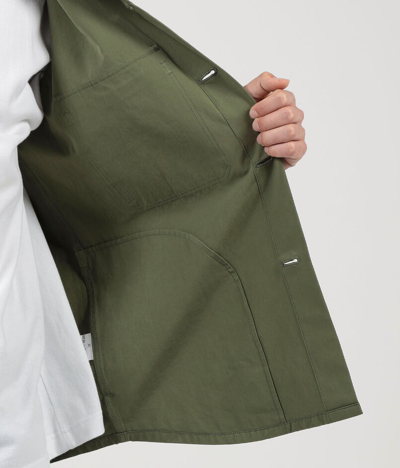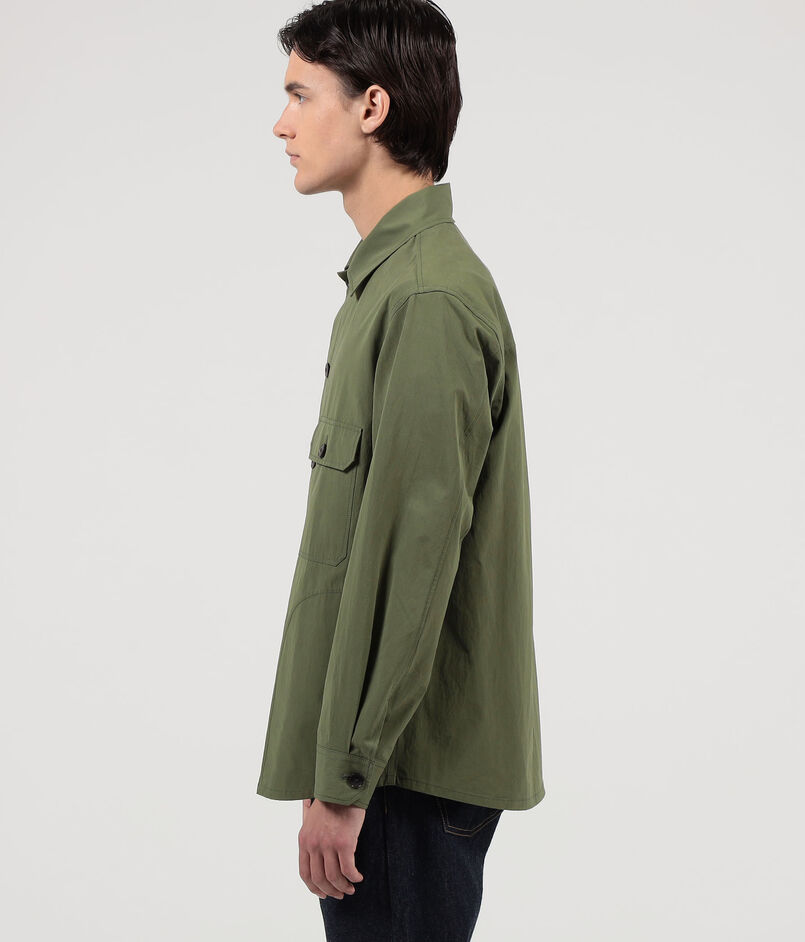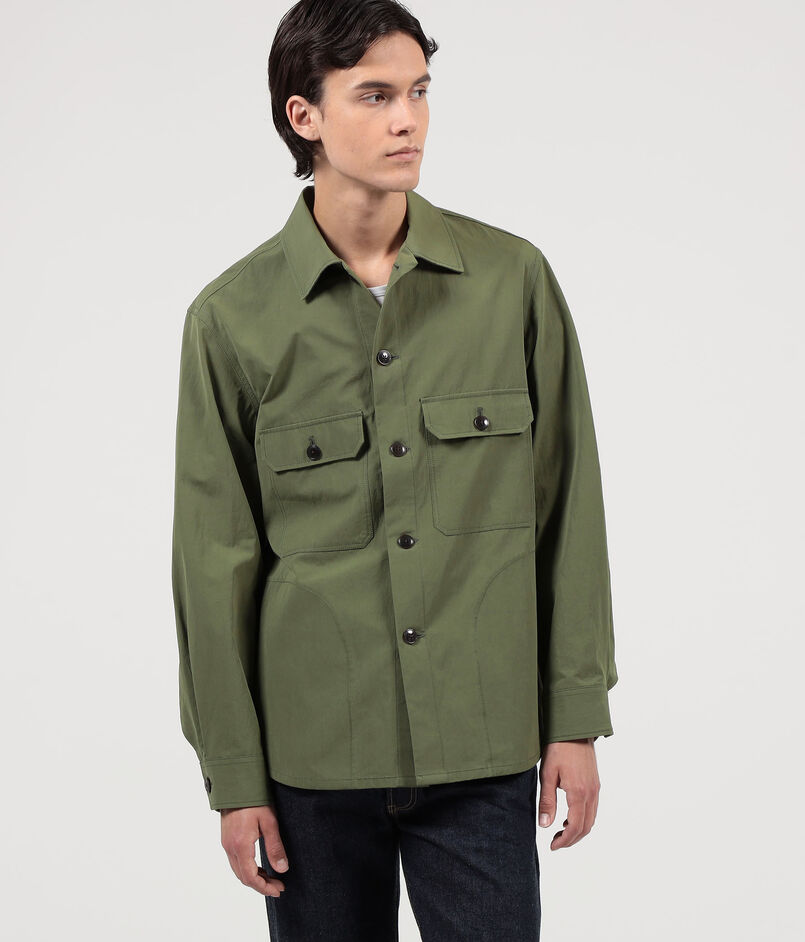 デザインは、CPOシャツをベースに程よくボリュームを持たせたボックスシルエットで、二枚袖の立体感ある袖付けに仕上げました。