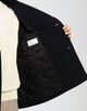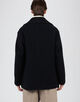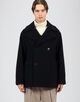 Pコートをベースに、テーラードの解釈と、ワークブルゾンの解釈を取り入れてモダナイズアレンジしたデザインを採用。