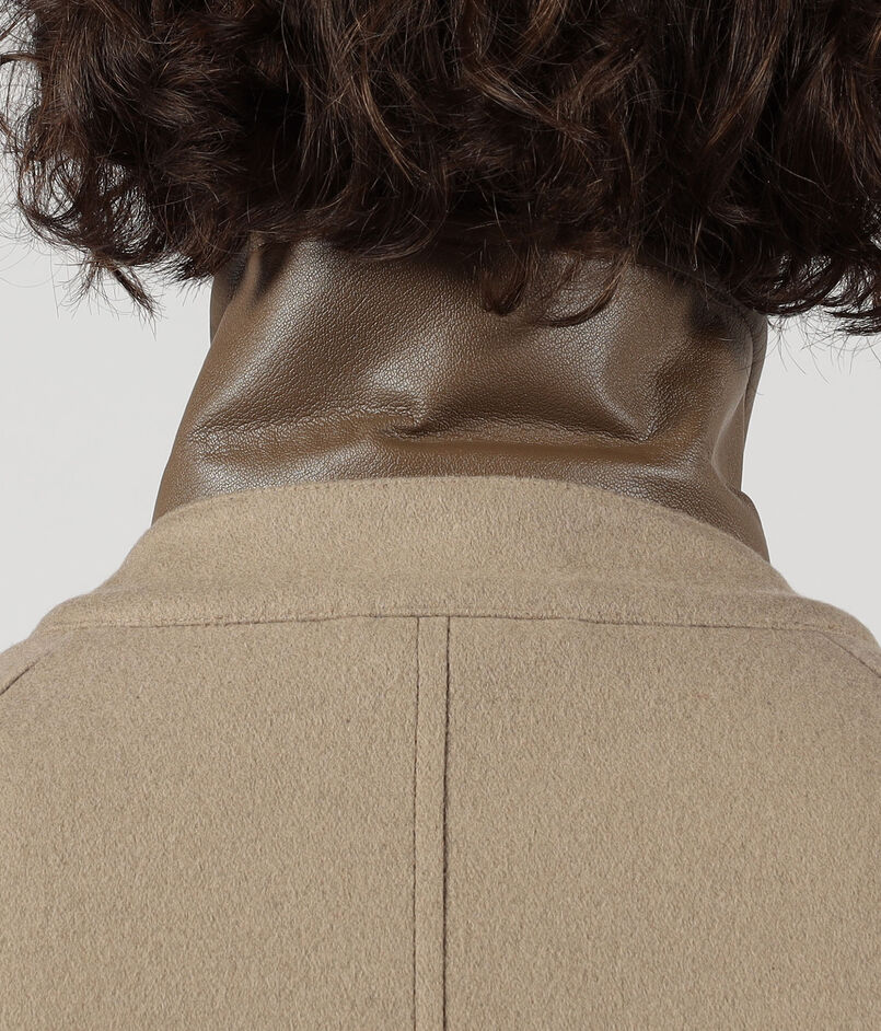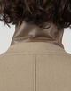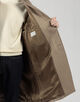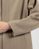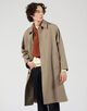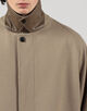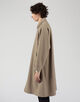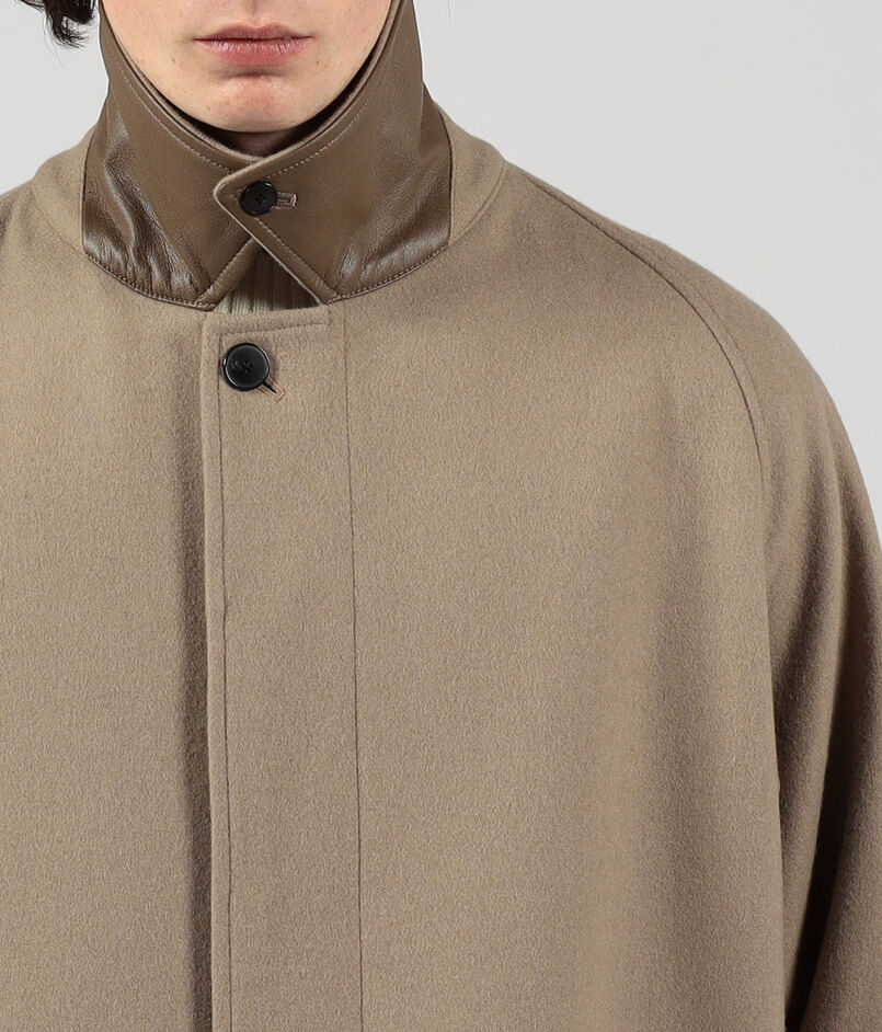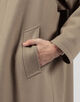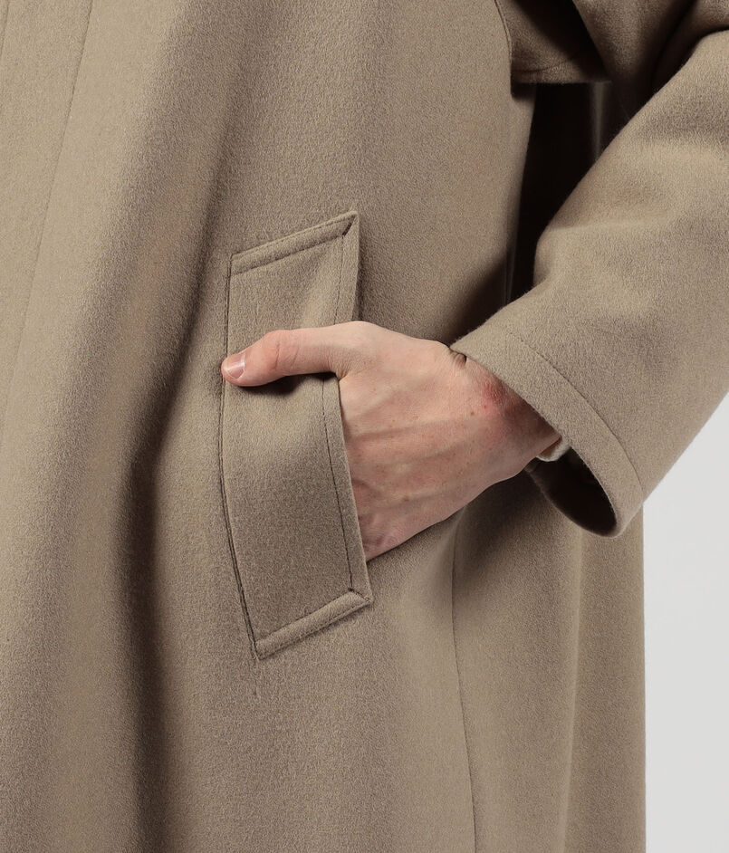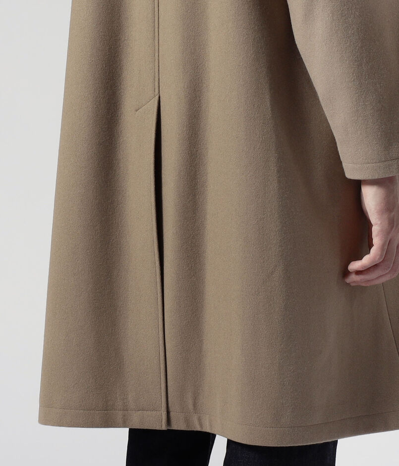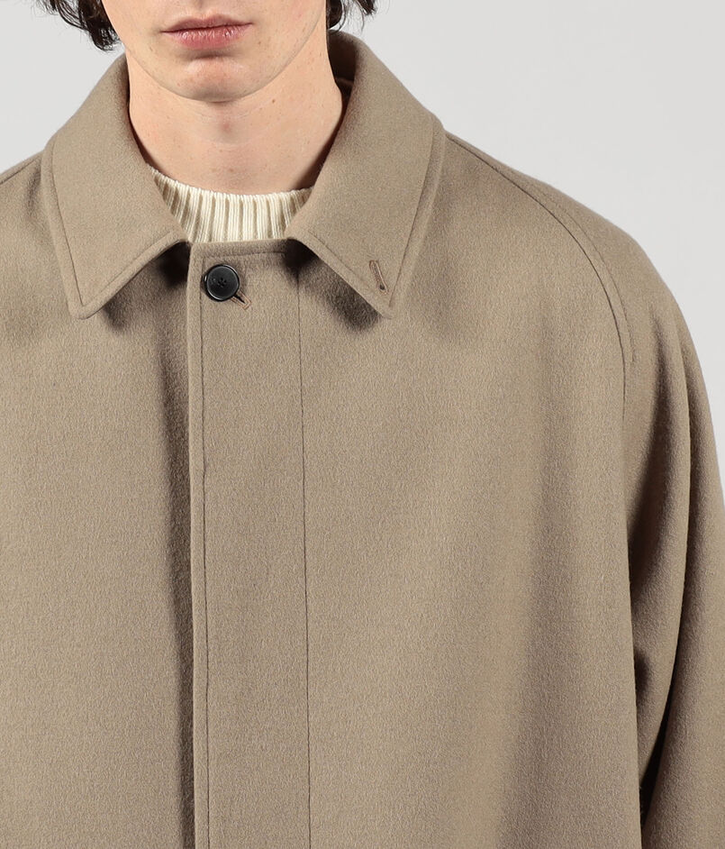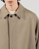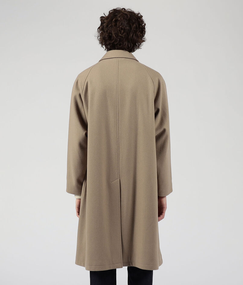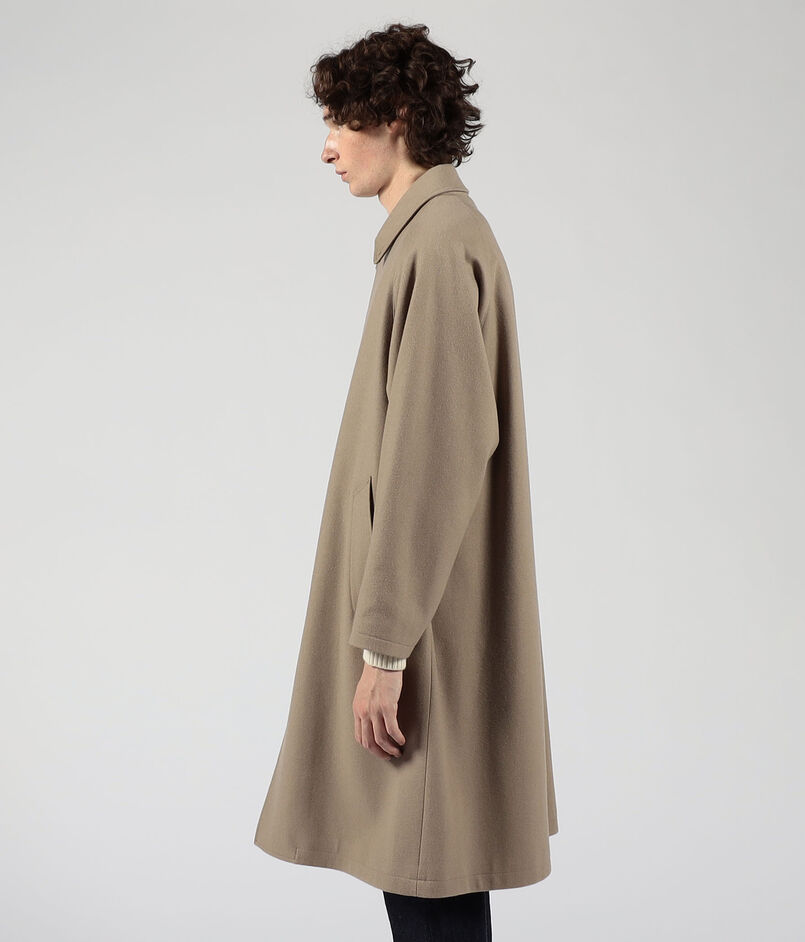 デザインは、バルカラーコートらしいトラディショナルな意匠は踏襲したまま、1枚袖ながらの前振り袖パターン、特徴的なAラインシルエット、袖周りのリラックスしたボリューム感、大き目の腰ポケットなど、現代的なモダンアレンジを加えました。
