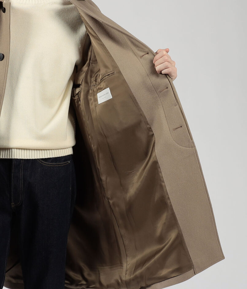 繊維が細く、柔らかく、肌触り良く、下着などにも使用される優れた保温性や吸湿性を持つファインメリノウールを使用したバルカラーコート。