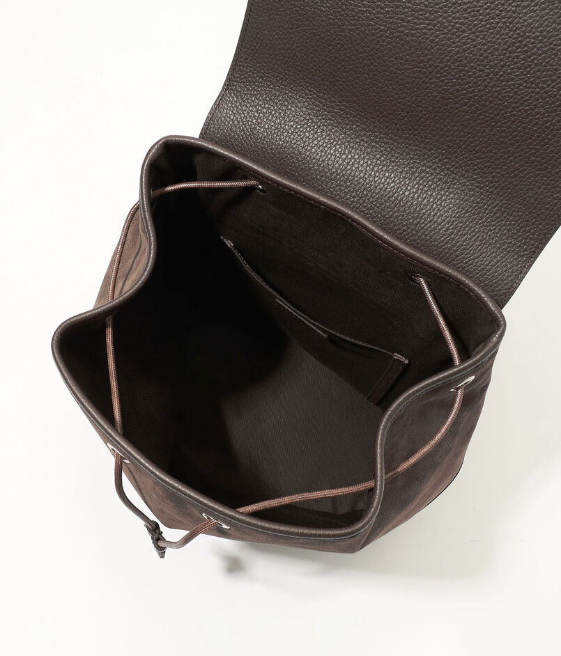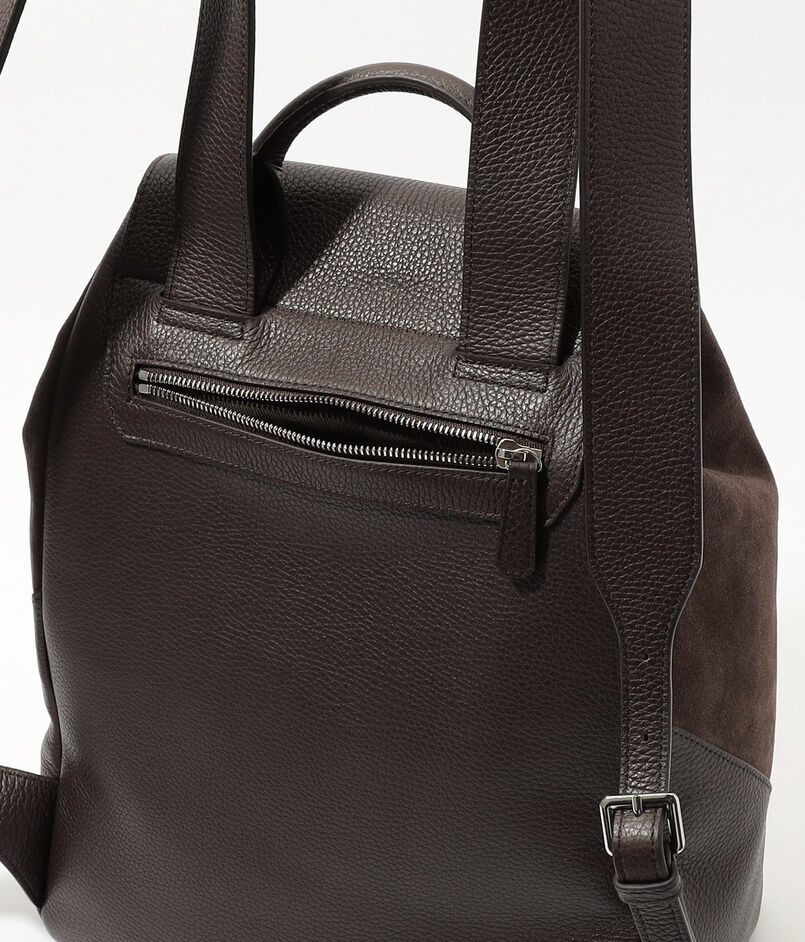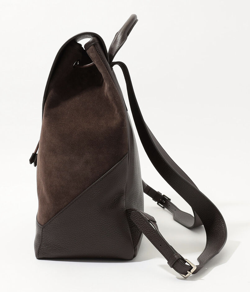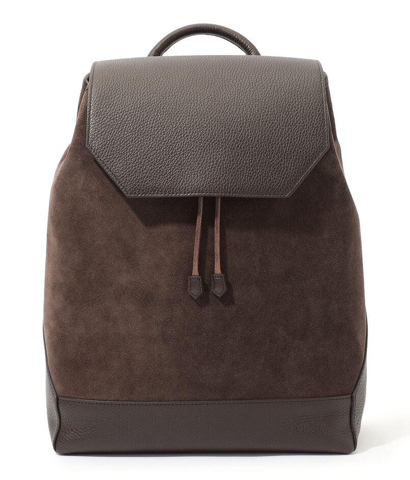 イタリアの老舗タンナーによる上質なシュリンクレザーとスウェードを贅沢に使用したバックパック。