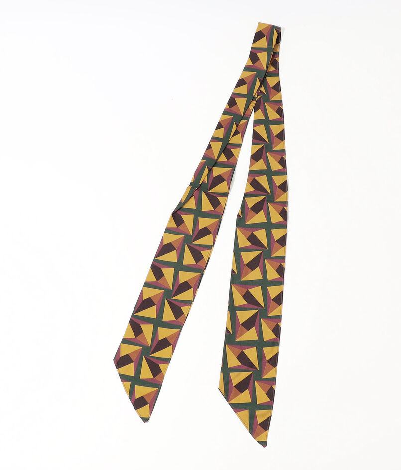 モダンな配色と柄が特徴のスカーフ。