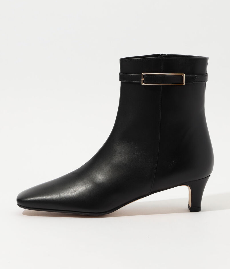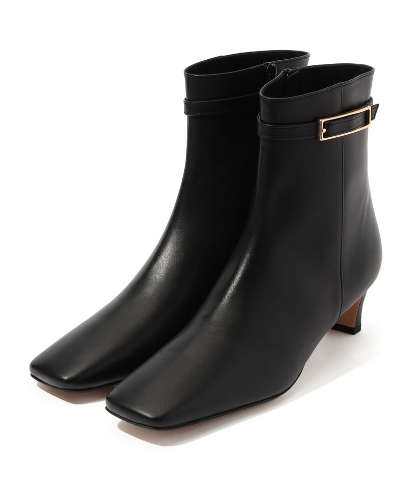 ゴールドバックルが上品なアクセントを添える、ショートブーツ。
