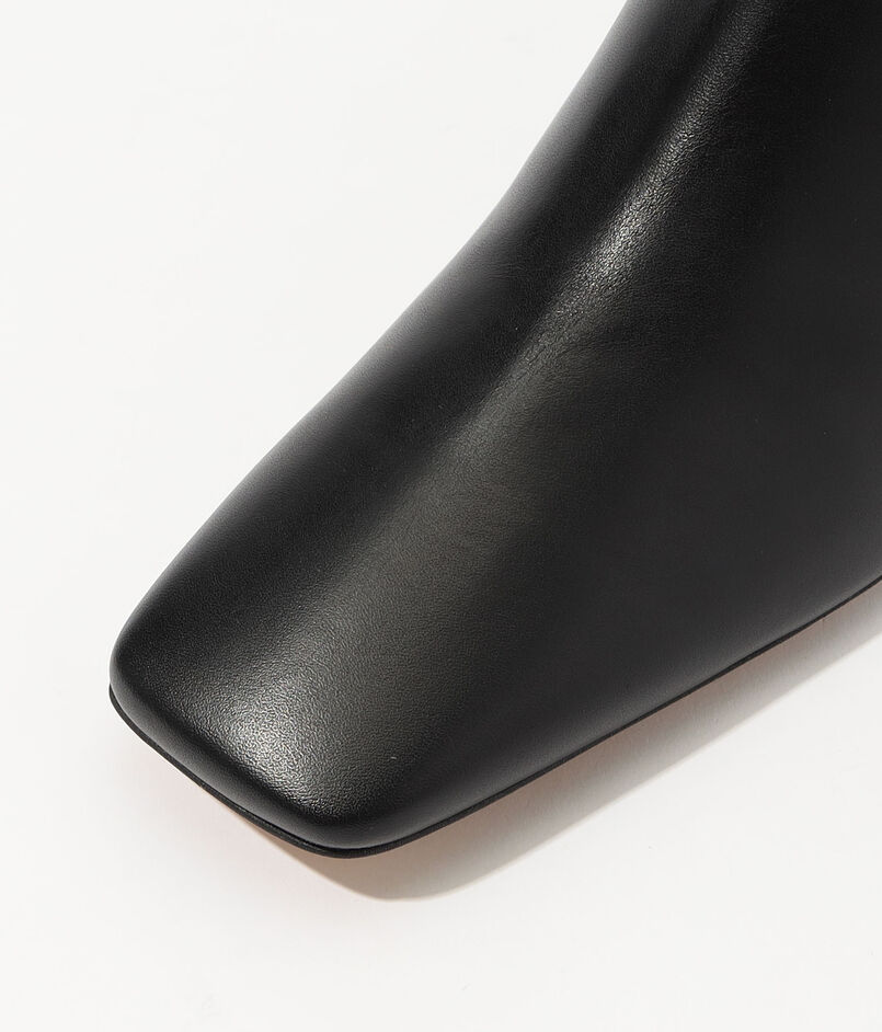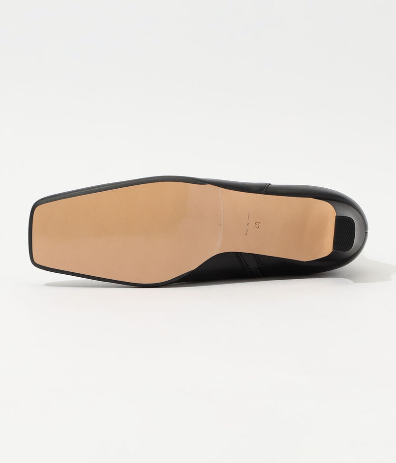すっきりとしたスクエアトゥがモードな印象を演出します。