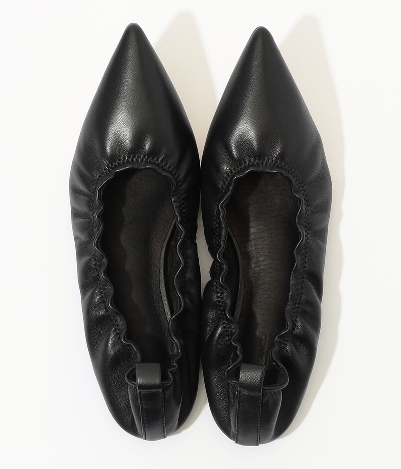 柔らかなレザーとギャザー特徴的なバレエシューズ。