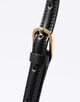 イタリアで丁寧にハンドメイドされたスムースレザーに、ゴールドメタルのT字ロックと底鋲がポイント。