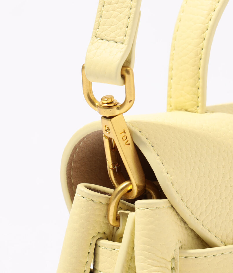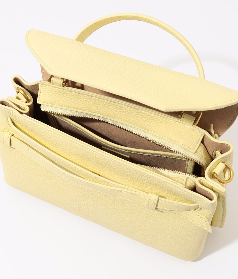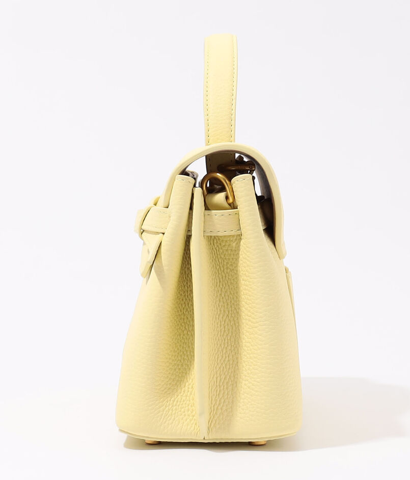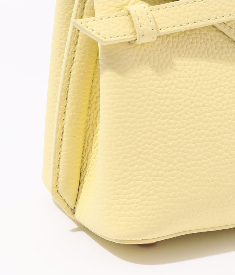 リボン部分はスナップボタンで開閉の調節が可能。開口部が大きく開くため、荷物の出し入れもスムーズで、デザイン性と実用性を兼ね備えた仕様です。