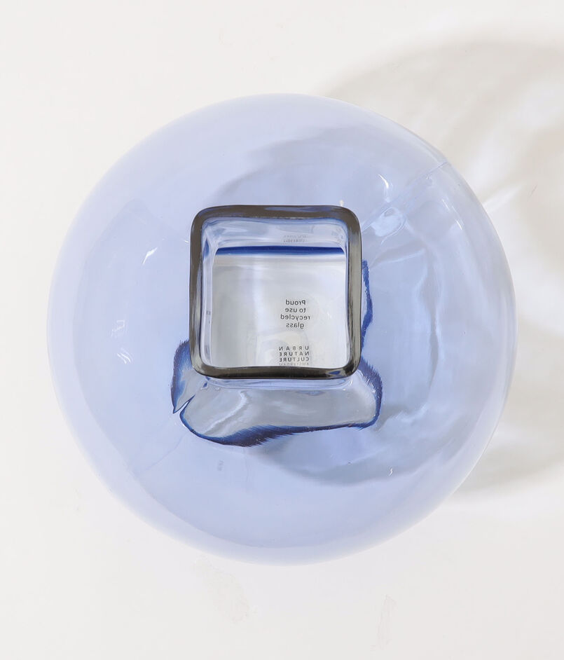 再生ガラスを使用したガラスのフラワーベースは、さまざまな製品を生産する過程で出た余剰ガラスを回収、再加工して作られています。