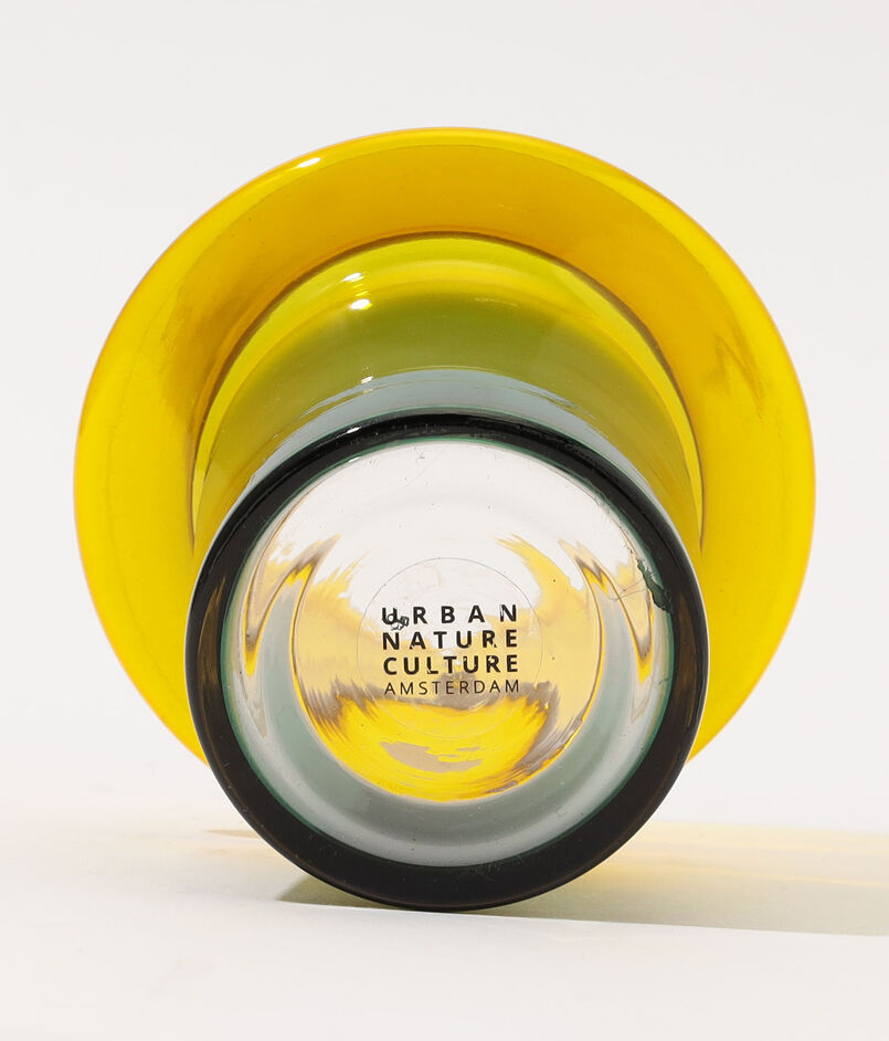 再生ガラスを使用したガラスのフラワーベースは、さまざまな製品を生産する過程で出た余剰ガラスを回収、再加工して作られています。