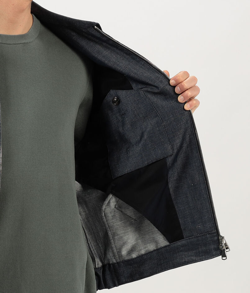 イタリアを代表するアウターブランド〈 VALSTAR 〉社のモダンなブルゾンに、仏〈DORMEUIL〉社にトゥモローランドが別注したウールリネンデニム生地を乗せて作成したスペシャルなコラボレーションアイテムです。