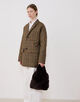 ふんわりとしたソフトな風合いとさりげない光沢感が魅力のエコファー素材を使用したバッグ。