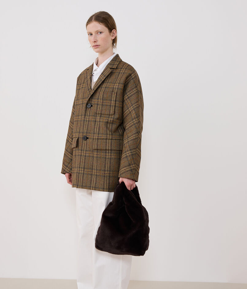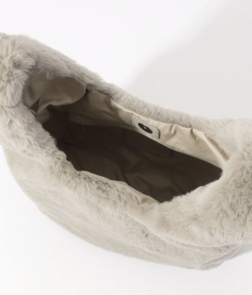 ふんわりとしたソフトな風合いとさりげない光沢感が魅力のエコファー素材を使用したバッグ。