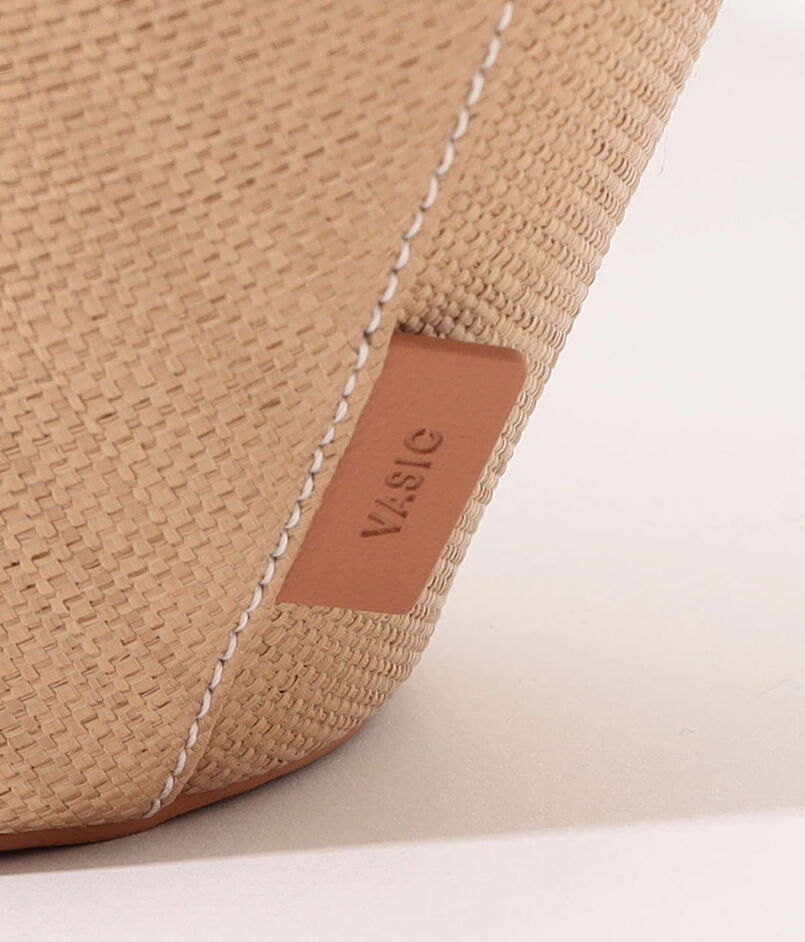 ラフィア調素材とレザーのコンビネーションをいかし、大人のリラックススタイルを演出する『VASKET』。