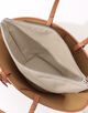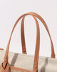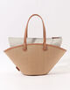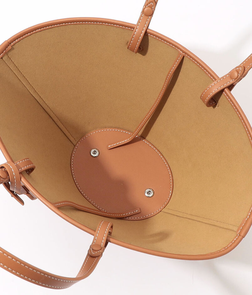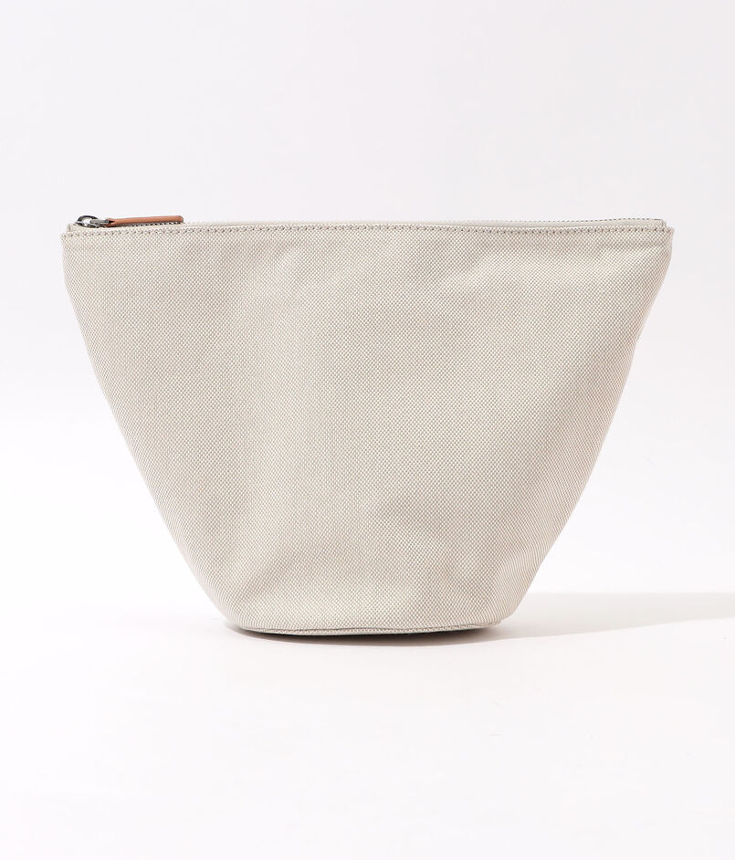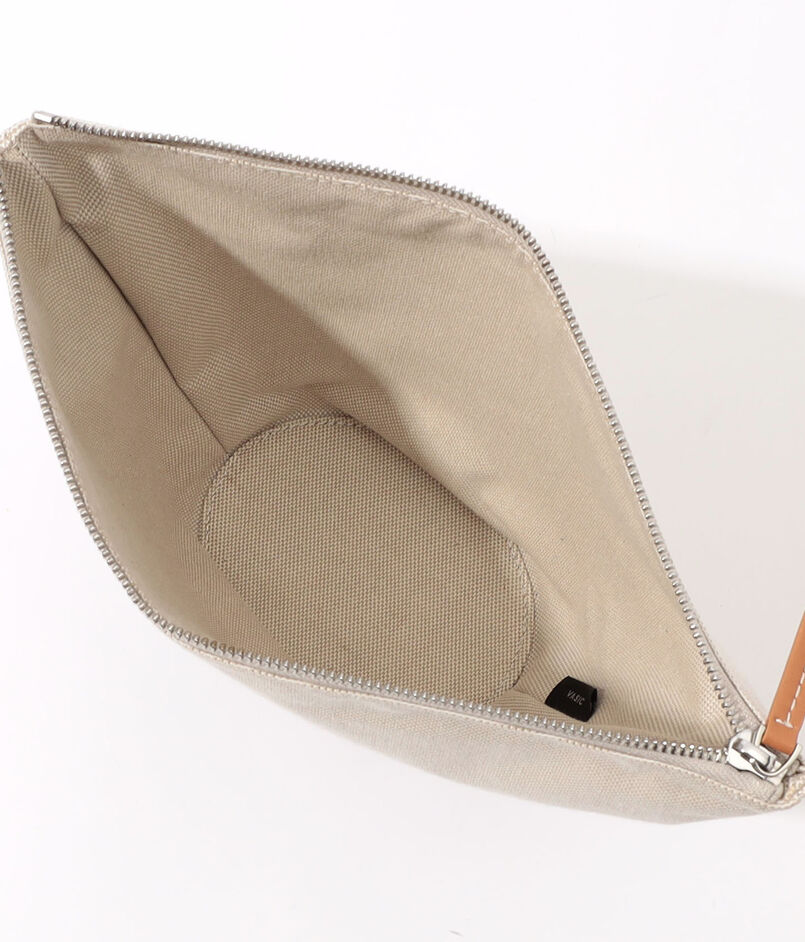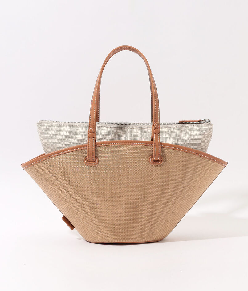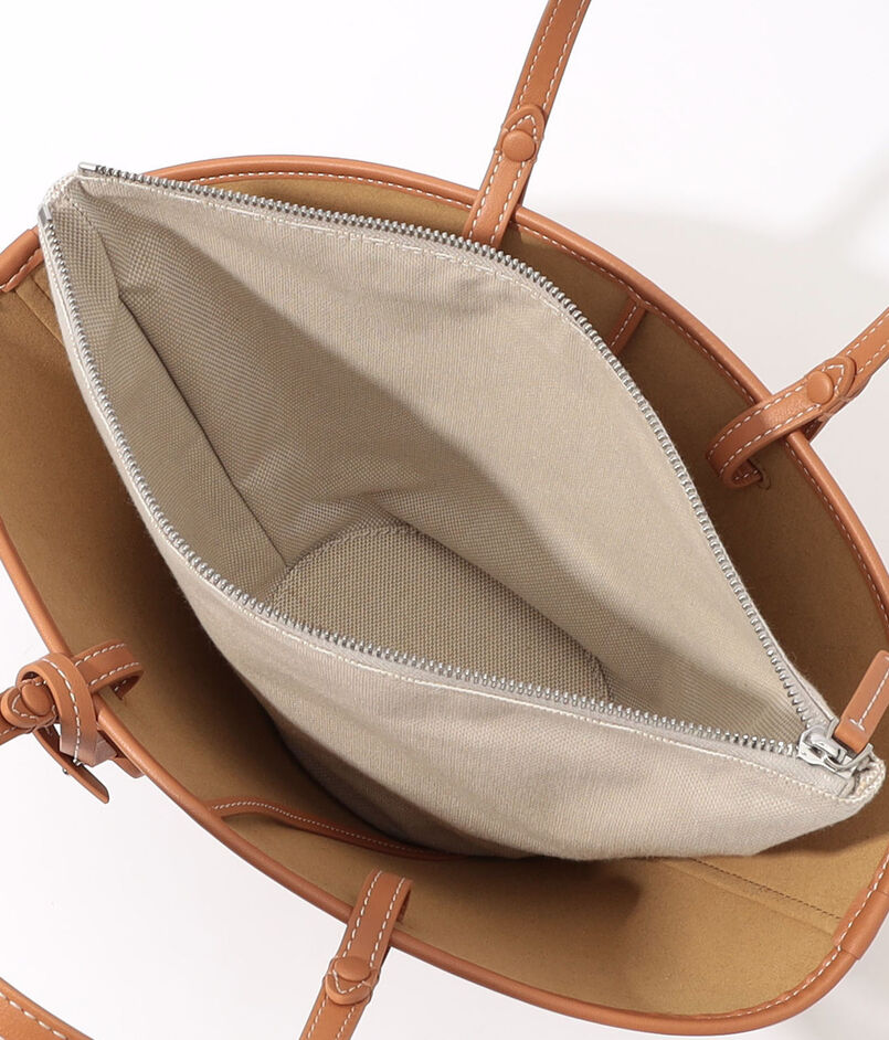 開口部を広くした扇型のシルエットで、バッグに付属させたキャンバス地のポーチが見える絶妙なバランス。