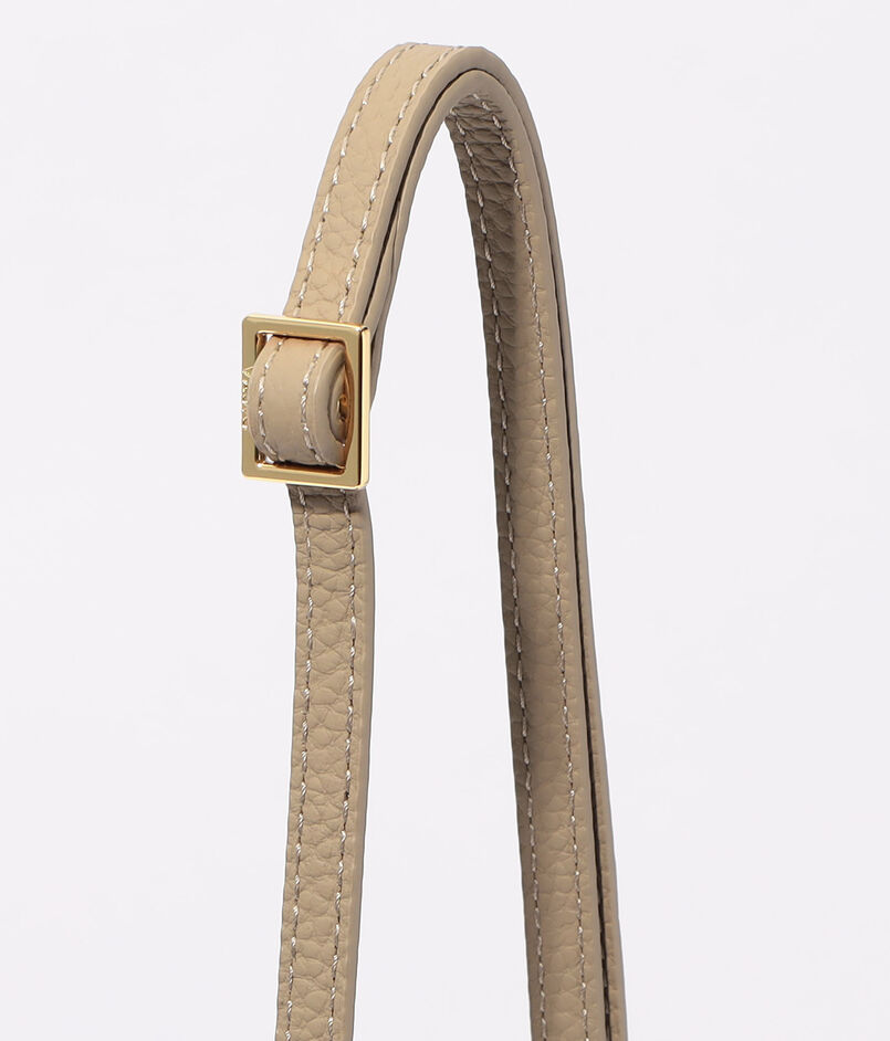 取り外し可能なストラップはスリムなデザインで、肩から掛けたときもバッグの凛としたシルエットが際立ちます。