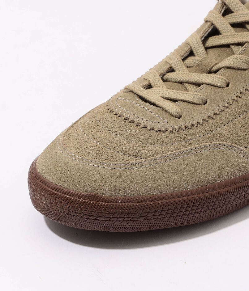 ヴィンテージのフットボールシューズにインスパイアされ、クリーンなラインとパッド入りのディテールを備えた、薄いソールのレトロなスニーカーです。