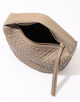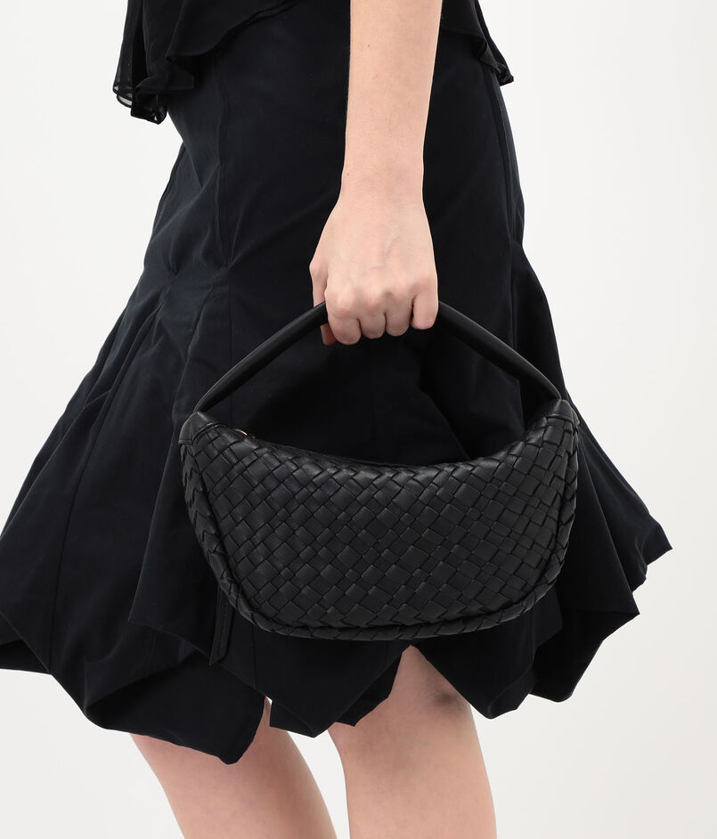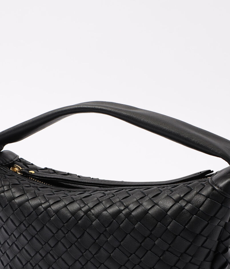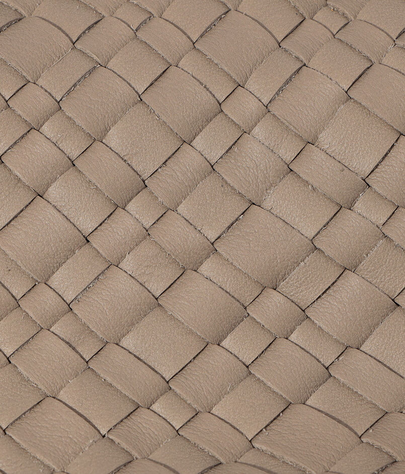 幅の広さが異なる3種類のレザーを編み込み、高級感と立体感のあるデザインになっています。