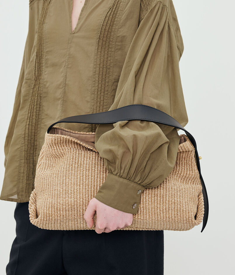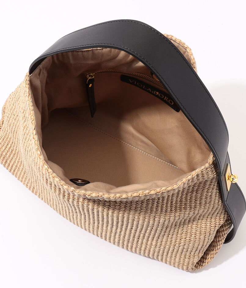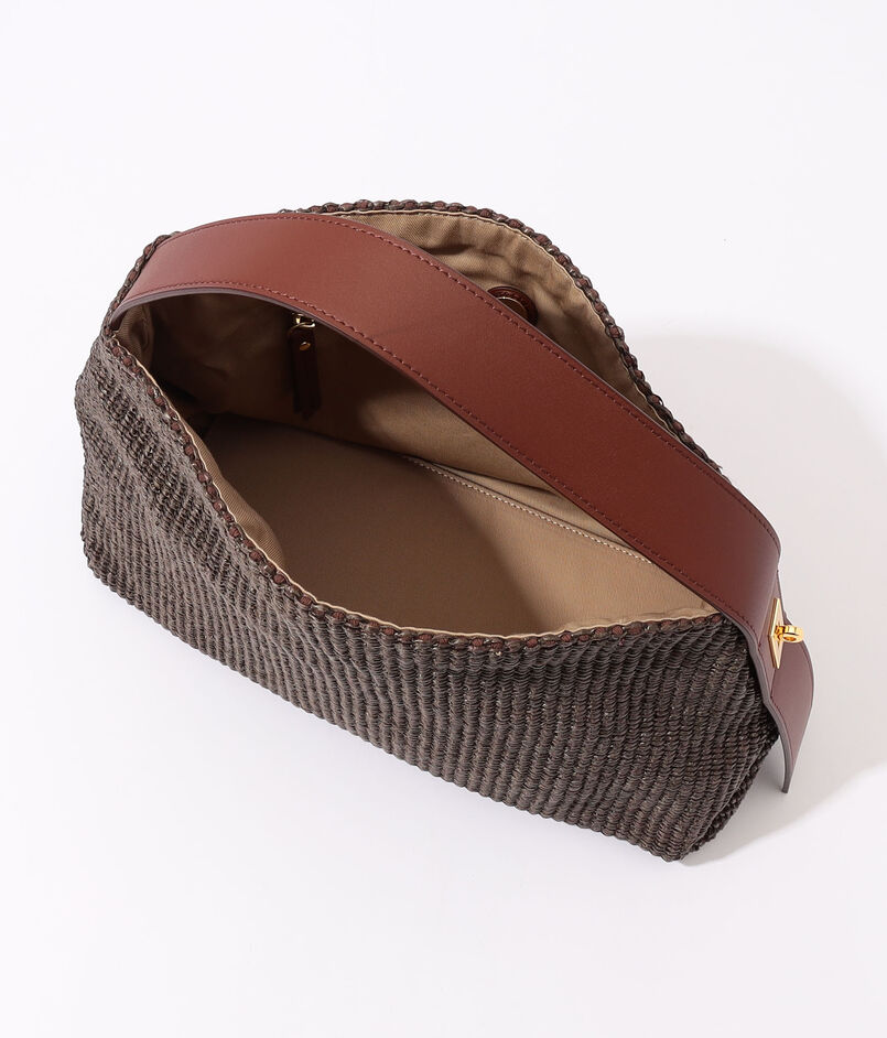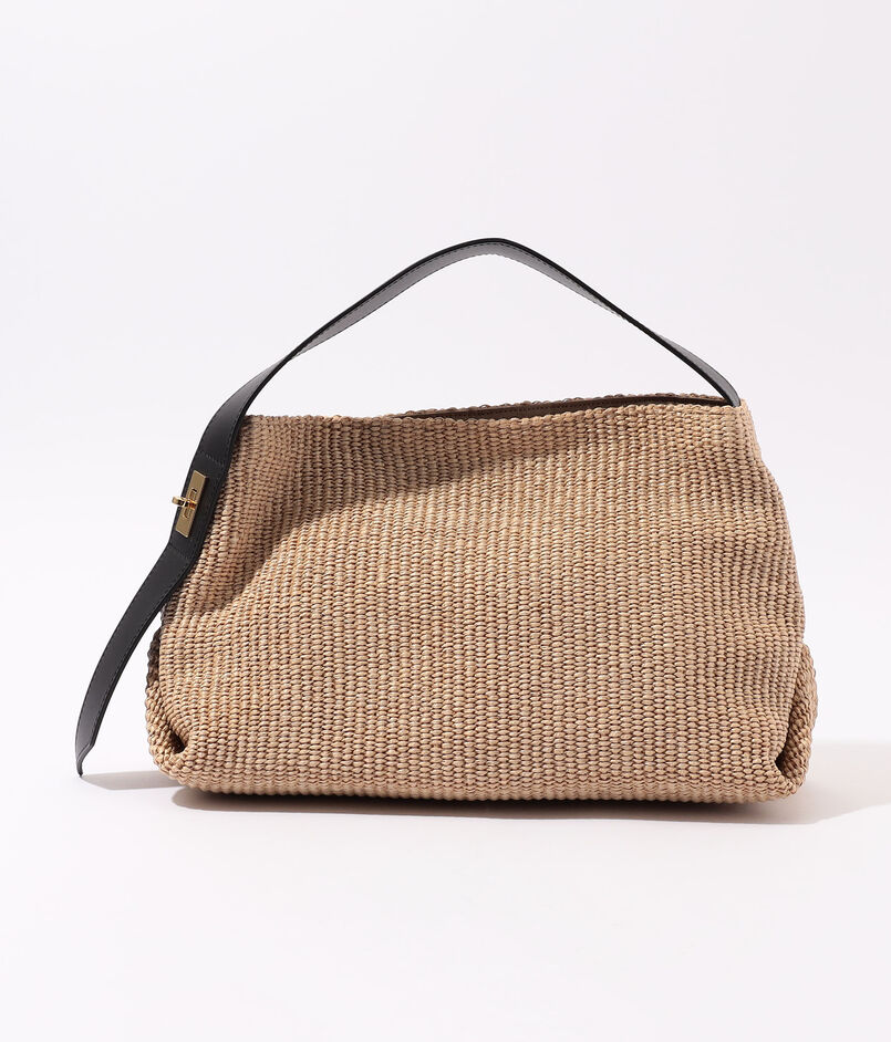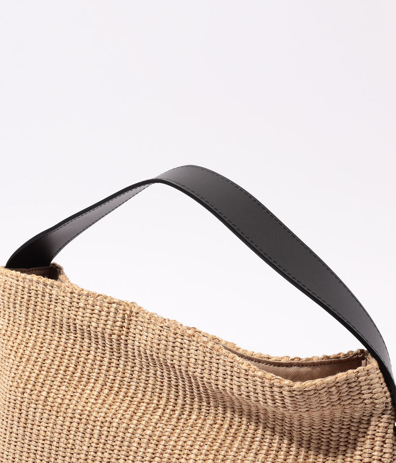 ラフィアのような涼やかな素材感のショルダーバッグ。