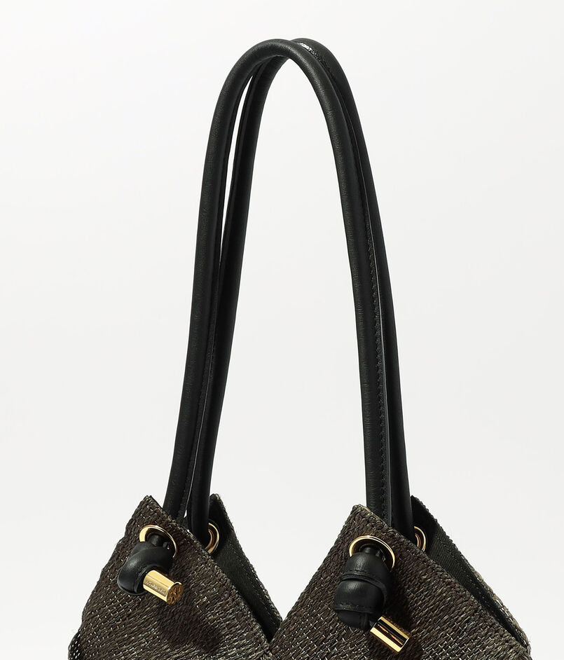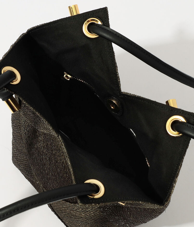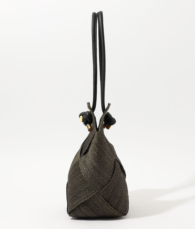 アバカをメッシュのように組んだ立体感のある表情が印象的なバッグ。