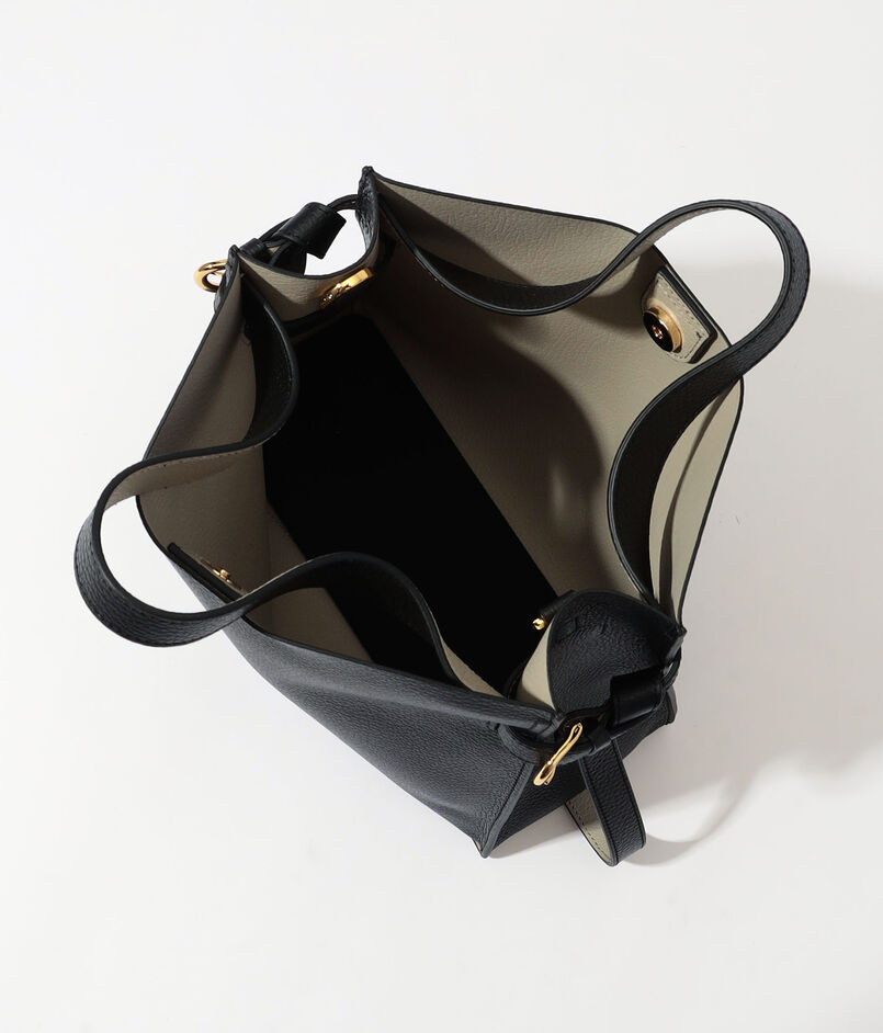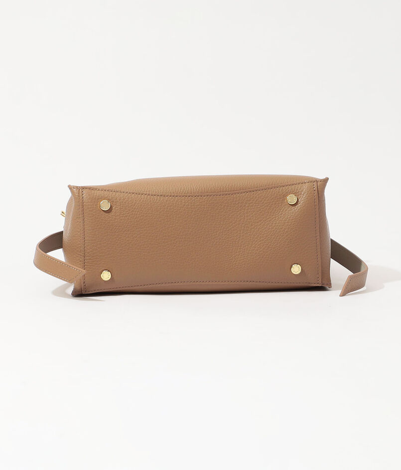 ゴールドの金具や両サイドのベルトリボンが上品なアクセントとなり、スタイリングをさりげなく格上げ。