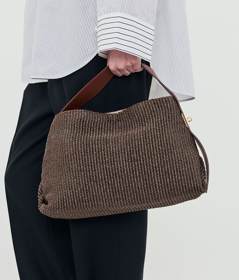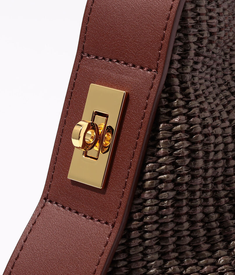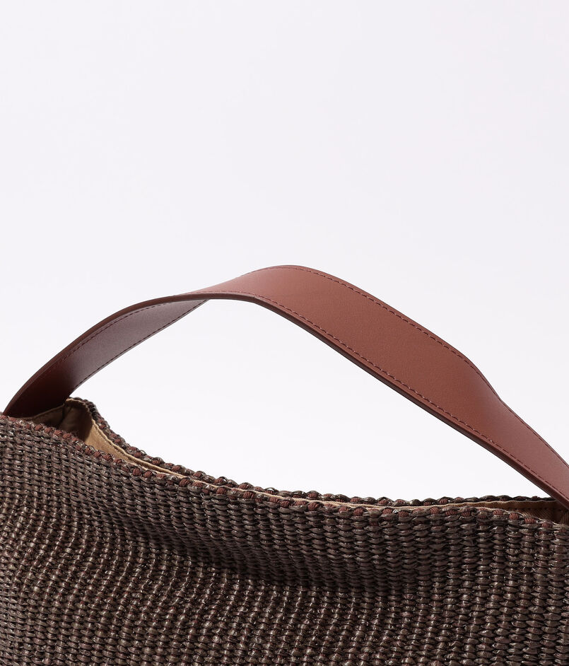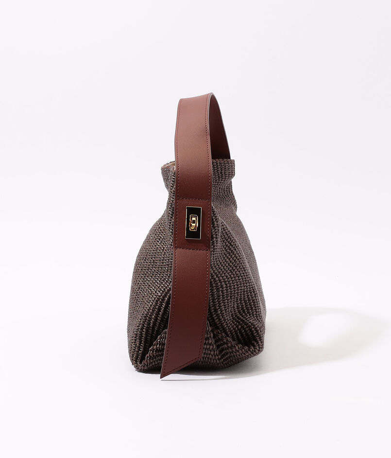 上品な風合いが魅力のラフィア調シートを使用したバッグ。