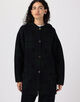 ドロップショルダーとワイドなスリーブでニットなどの上にも羽織りやすく、さまざまなスタイリングに合わせられるサイズ感もポイント。