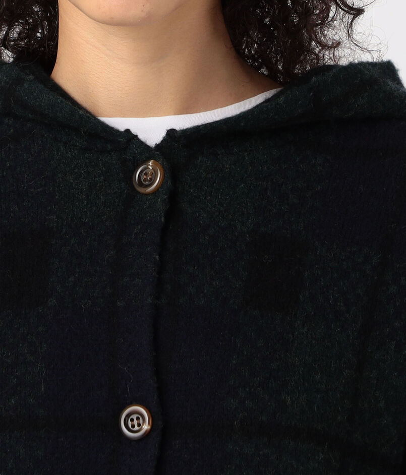 トラディショナルな印象のタータンチェック柄がポイントの〈GALERIE VIE〉オリジナルのニットコート。