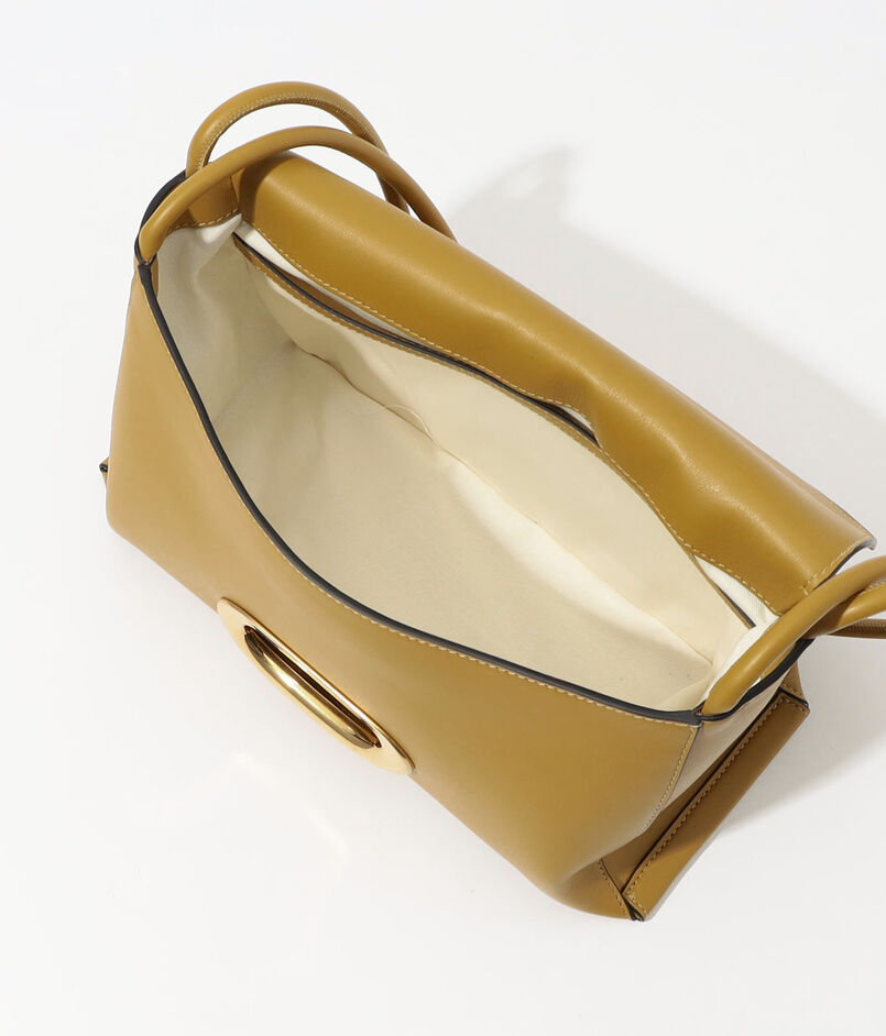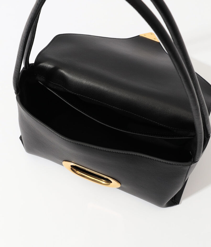 柔らかく折り畳まれたような独創的なフォルムに、大胆なハードウェアが力強いアクセントを添えます。