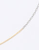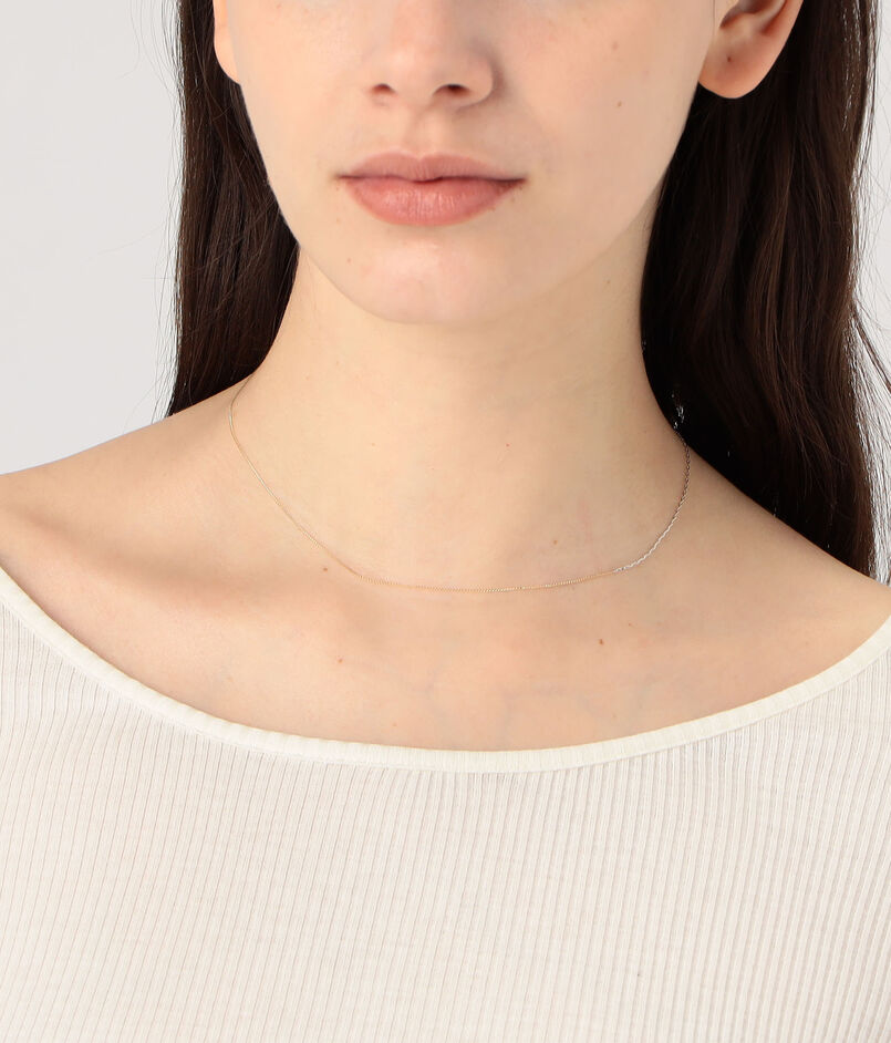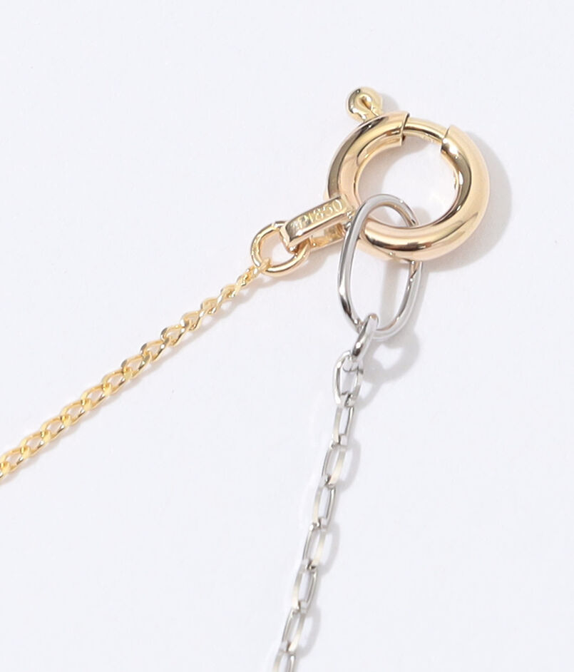 K10イエローゴールドとプラチナ、素材もフォルムも異なる2種類のチェーンを繋ぎ合わせ、洗練されたコントラストが表現されています。