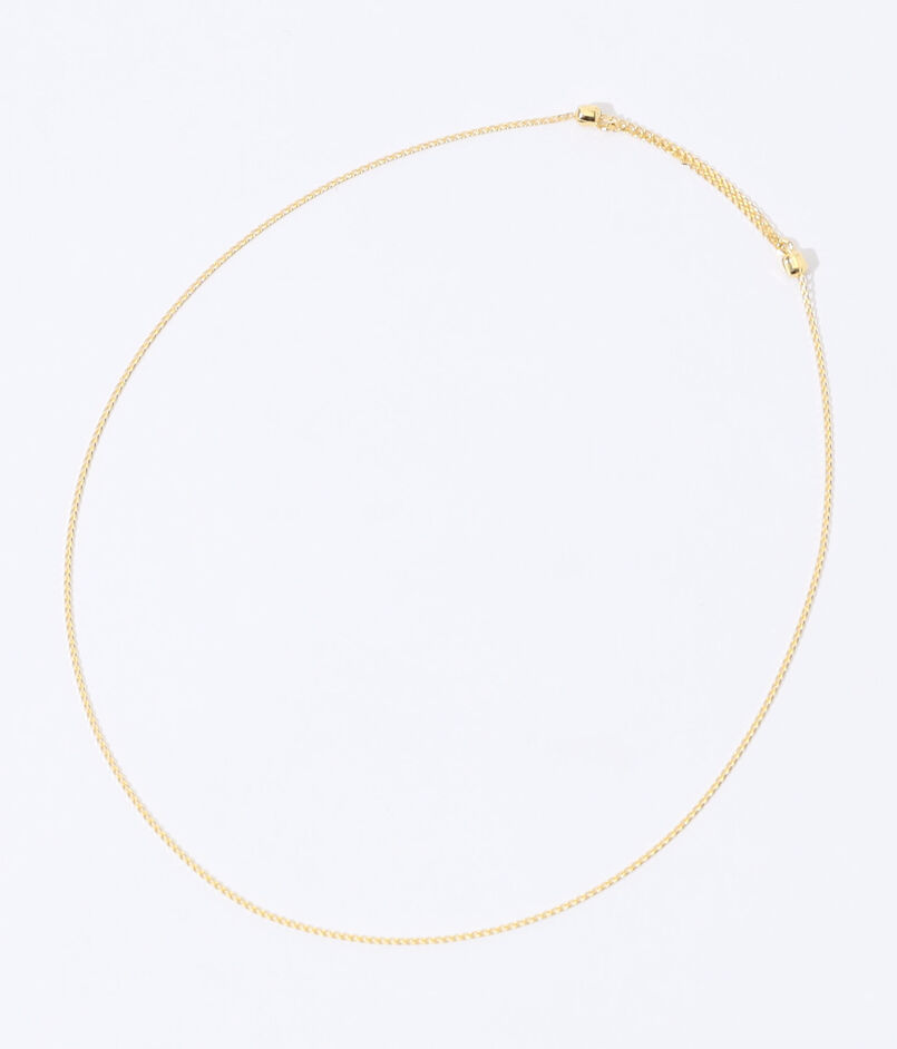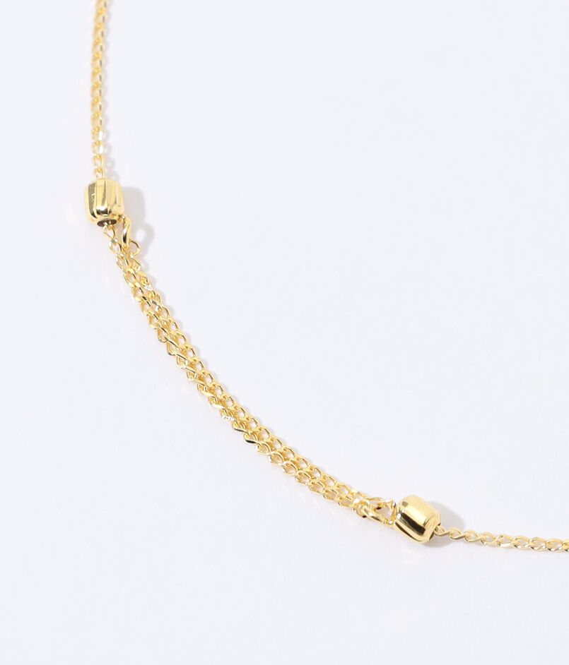 2つのスライドビーズとチェーンのみで構成された、留め具のないミニマルなブレスレット。