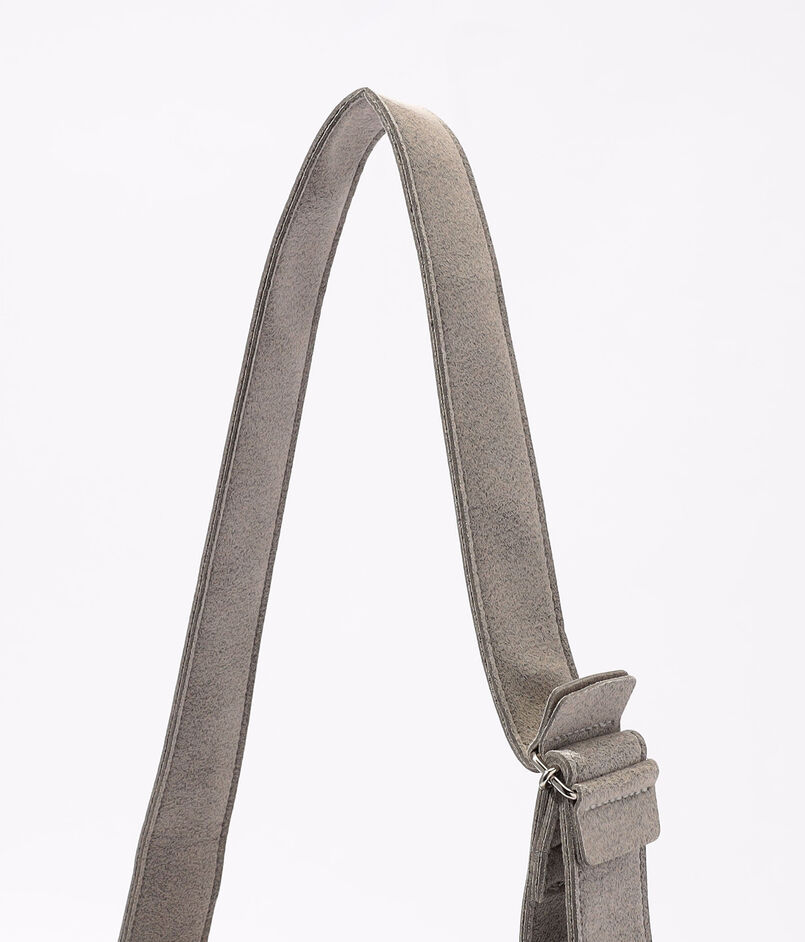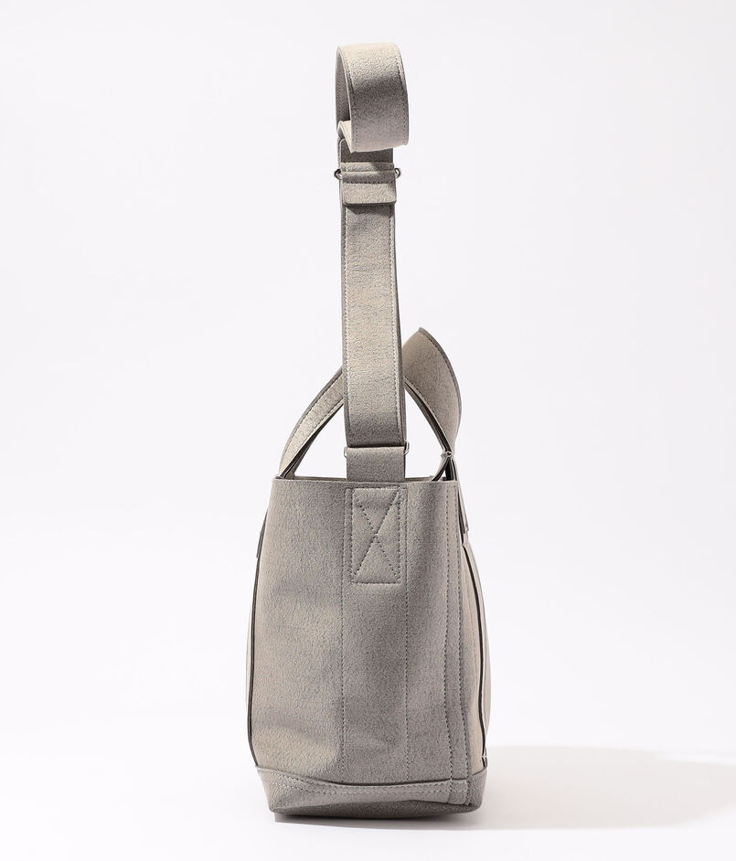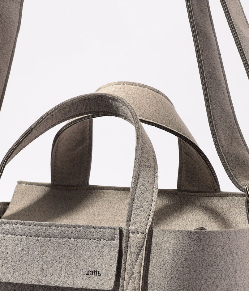 〈Zattu〉を象徴する、マイクロファイバースエードの独創的な風合いとミニマルな造形が響き合うバッグ。