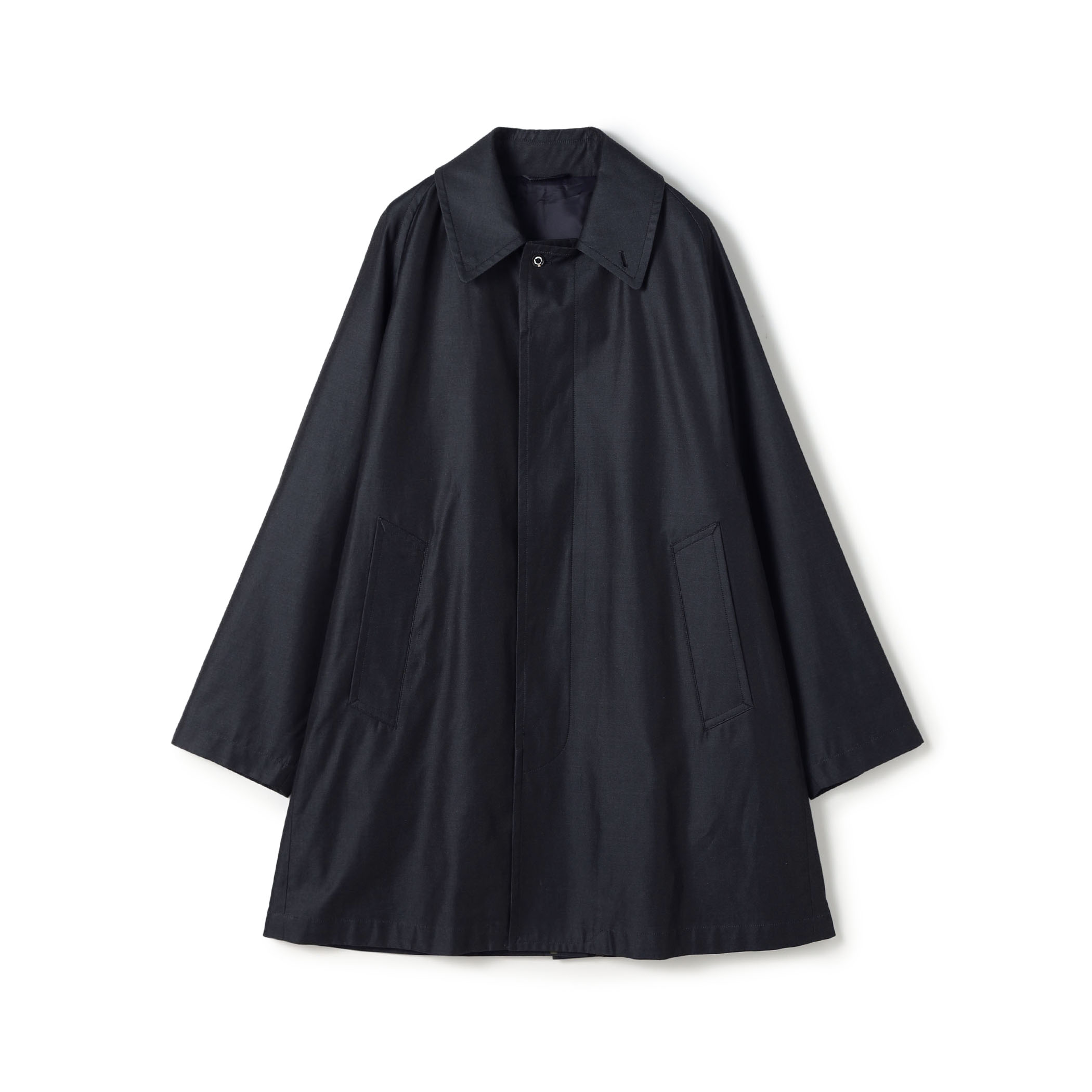 〈TOMORROWLAND〉定番のステンカラーコートをベースに、今の時代性を感じさせるミドル丈にアレンジし、見た目と着心地に軽量感を持たせました。
