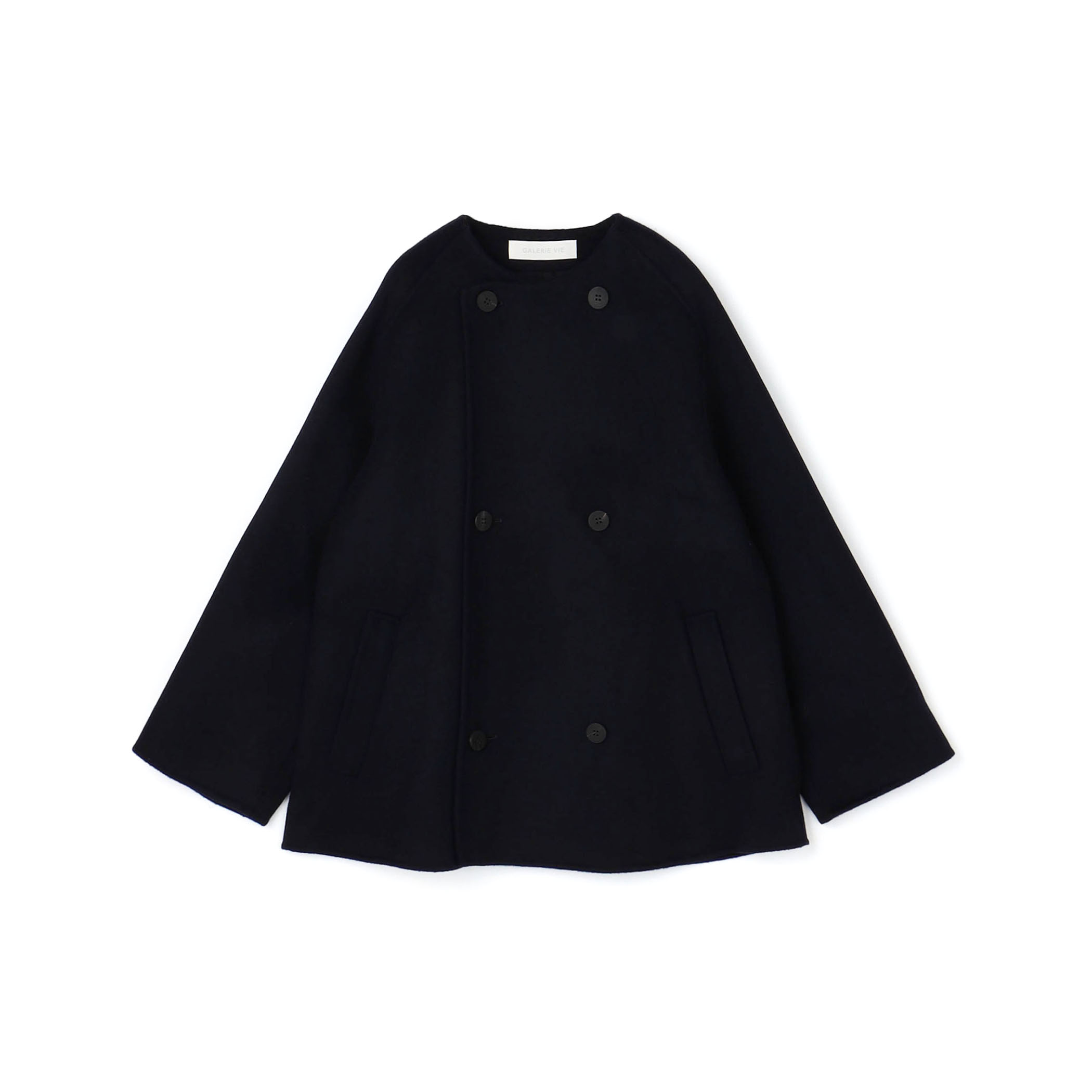 ウールダブルフェイス カラーレス ショートトレンチコート。
