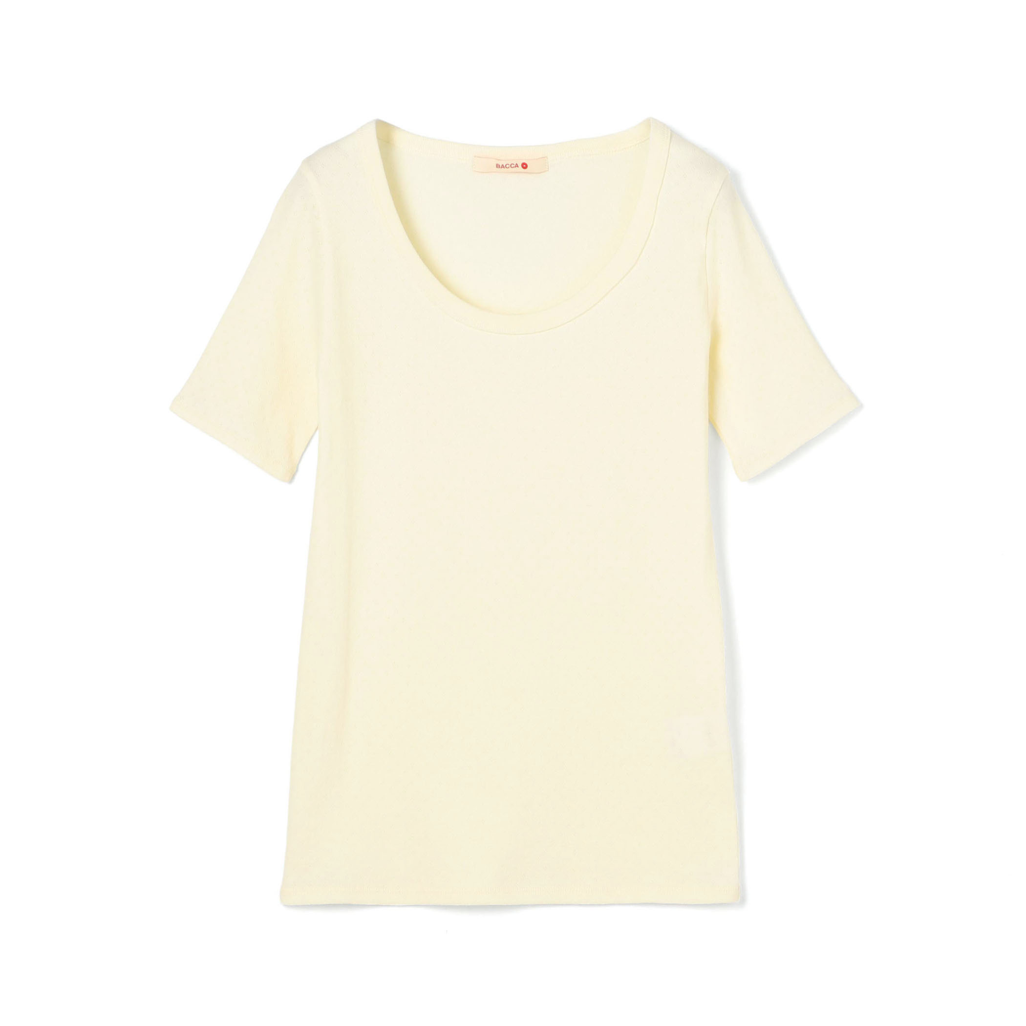 女性らしいフィット感のある襟ぐりは、マニッシュなボトムとも相性抜群です。