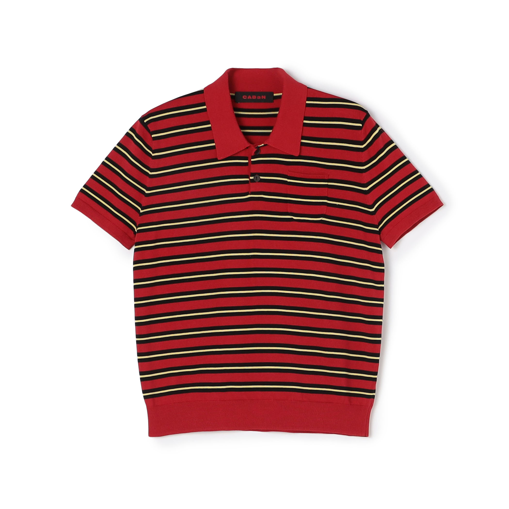 〈CABaN〉 コットンストライプ ポロハーフスリーブプルオーバー