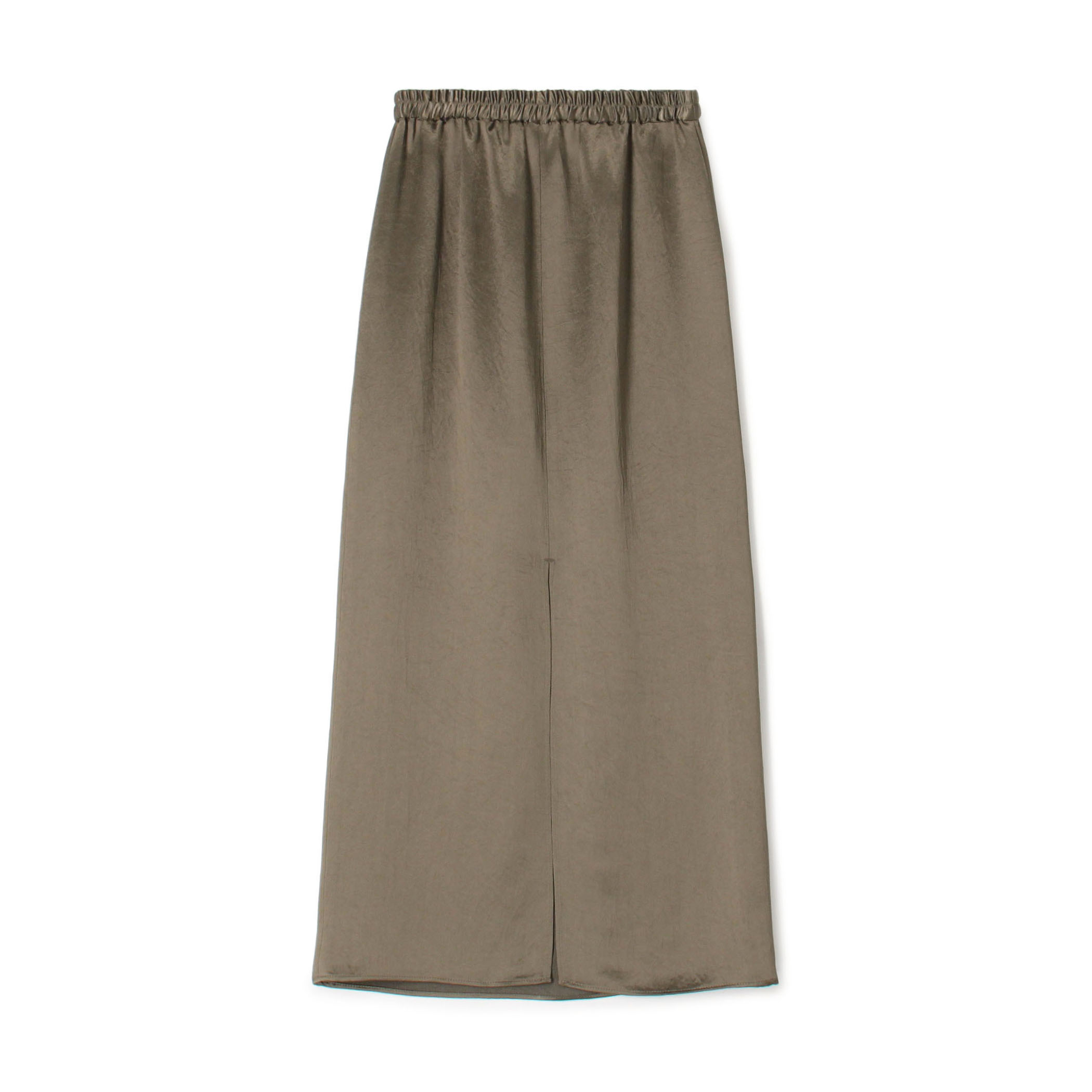 〈Edition〉で定番人気なサテンスカート。深めのスリットが印象的で、ポイントに。
