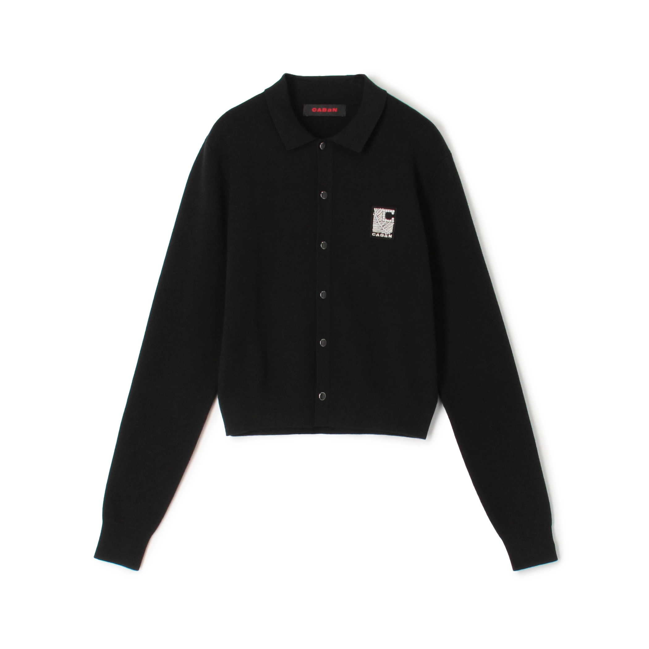CABaNのパールロゴポロカーディガンは、女性らしい小ぶりな衿と上品な印象を演出しながら、温かみのある膨らみと滑らかな肌触りを楽しめます。