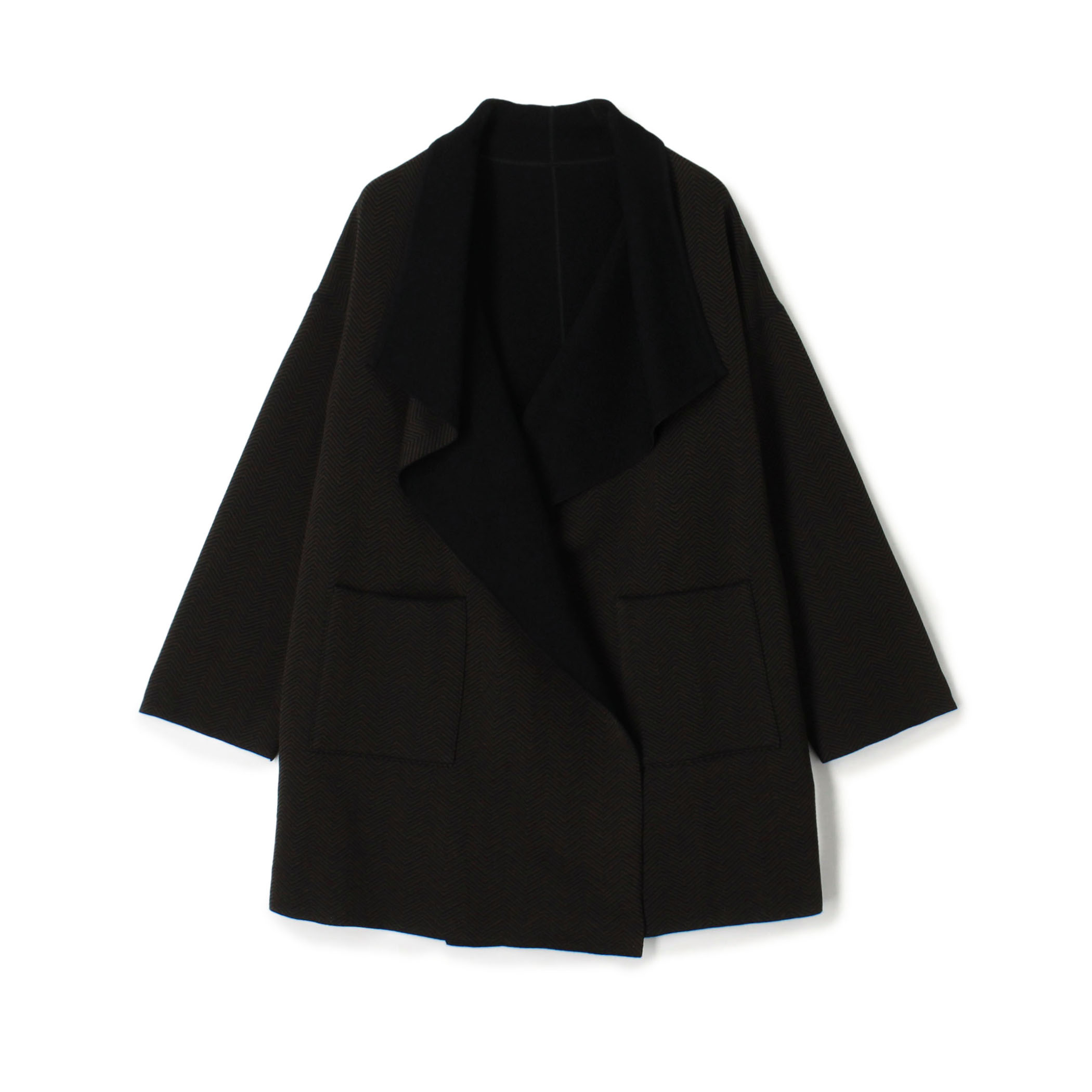 DES PRÉSのアウターは、アセテートとストレッチナイロンの交撚糸をベースに、ポリエステル糸を組みわせてヘリンボーン組織に織り上げた素材を使用しています。
