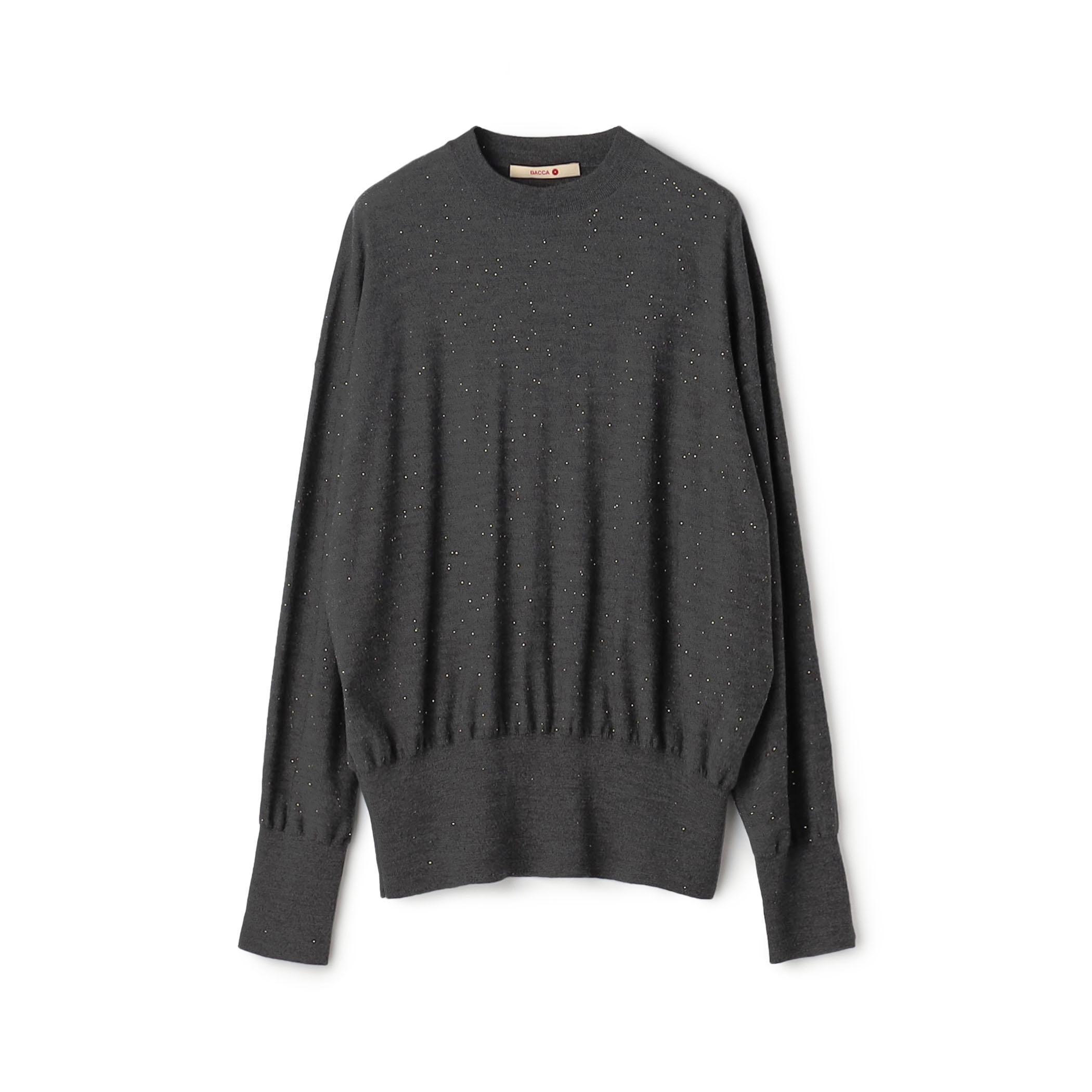 小さなスパンコールを織り込んだニットは、オールグレーでもほどよい華やかさを添えてくれます。