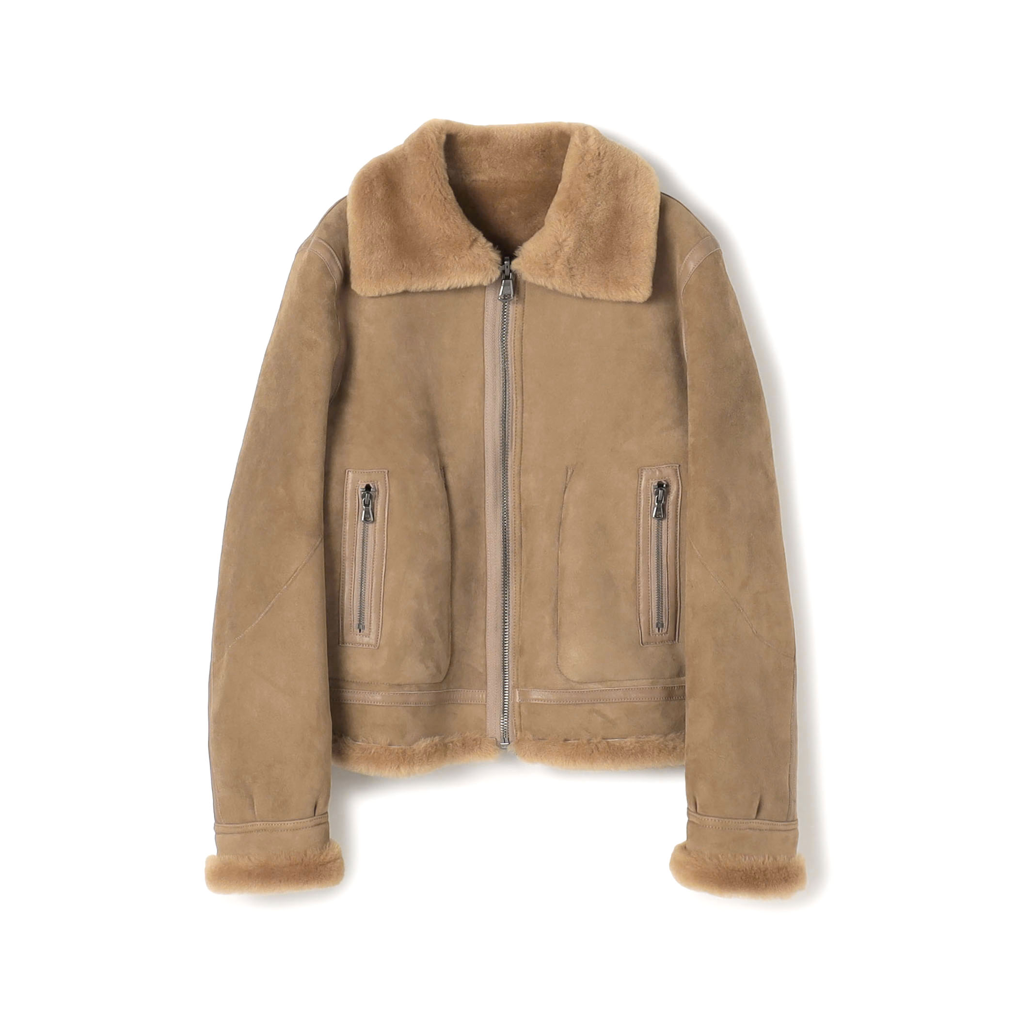 〈BACCA〉のムートンジャケットは柔らかく上質な素材で、タイムレスに愛したい一着。スエードの表情が今季の気分にもぴったりです。