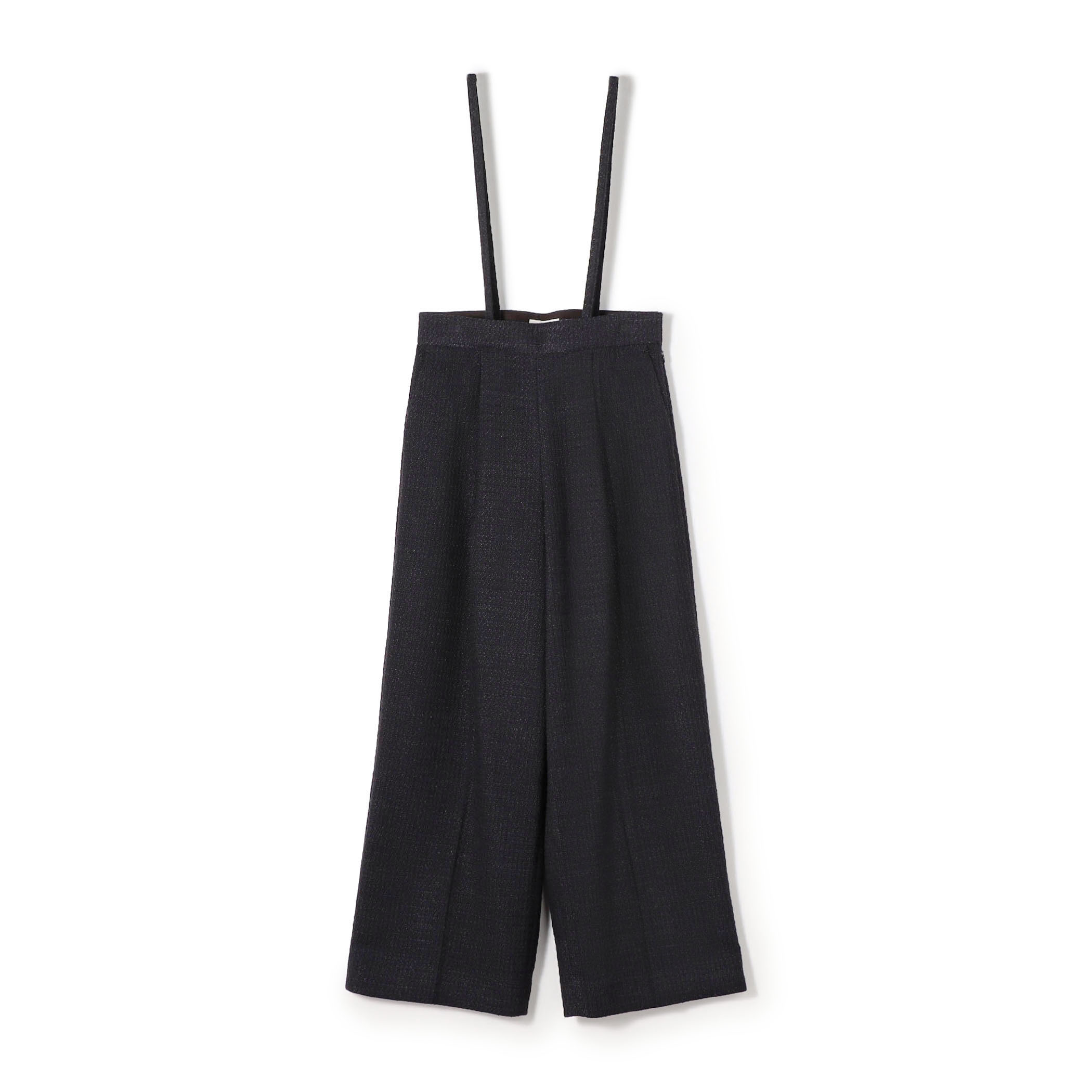 ドビーツイード素材を使用したライトファンシーツイードシリーズのワイドパンツは、フロントのタックや落ち感のあるワイドシルエットで、ほど良く抜け感のある着こなしが決まります。