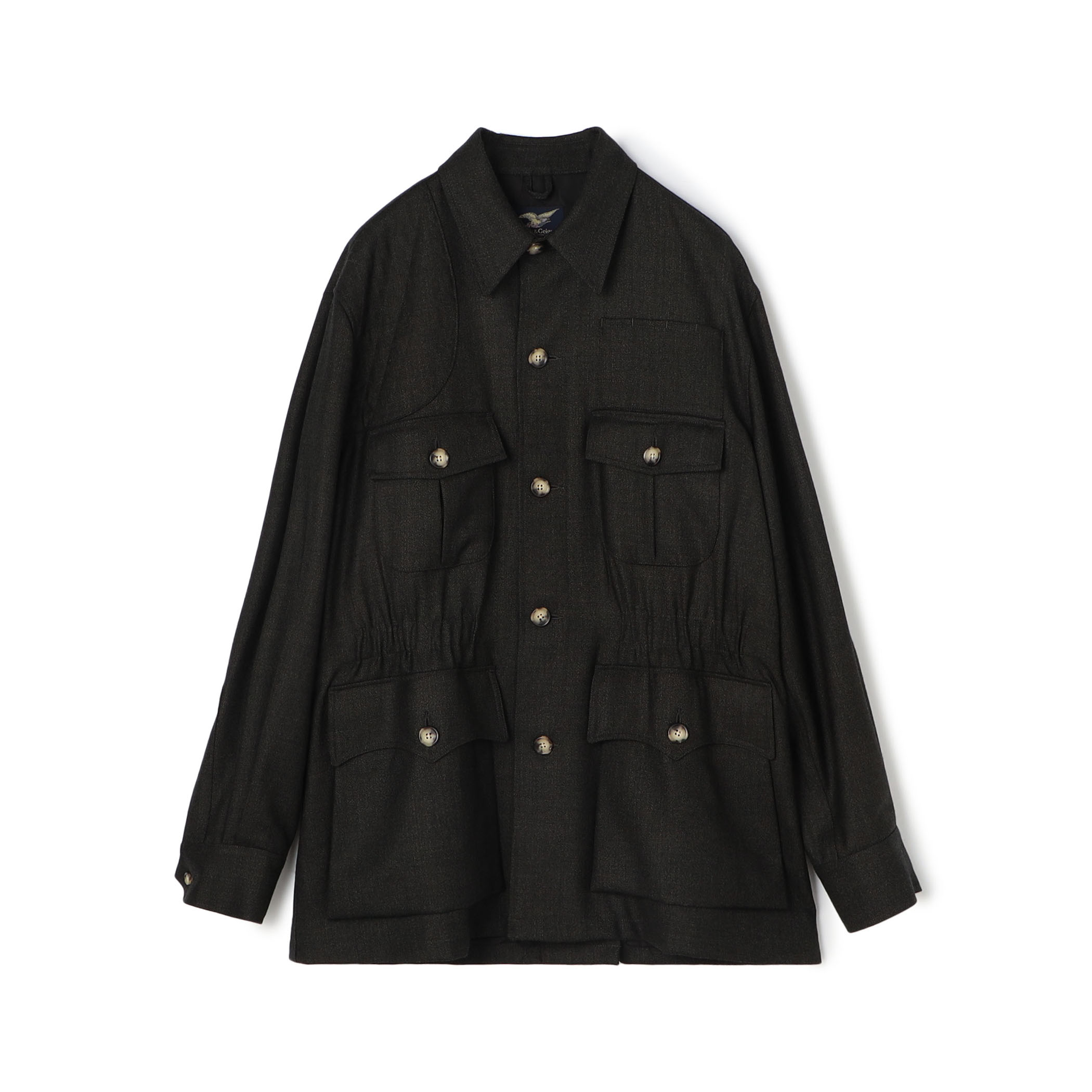 英国貴族が乗馬やフィッシングを楽しむ際に着用することを想定された生地のため、伝統的なサファリジャケットをモディファイした別注に仕上がっています。