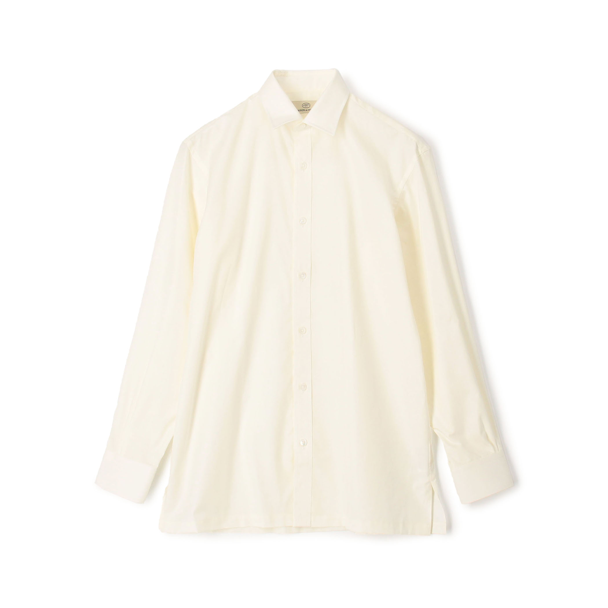 シャツを真っ白ではなく生成りのようなアイボリーで合わせることで、ネクタイの強い柄を馴染ませています。