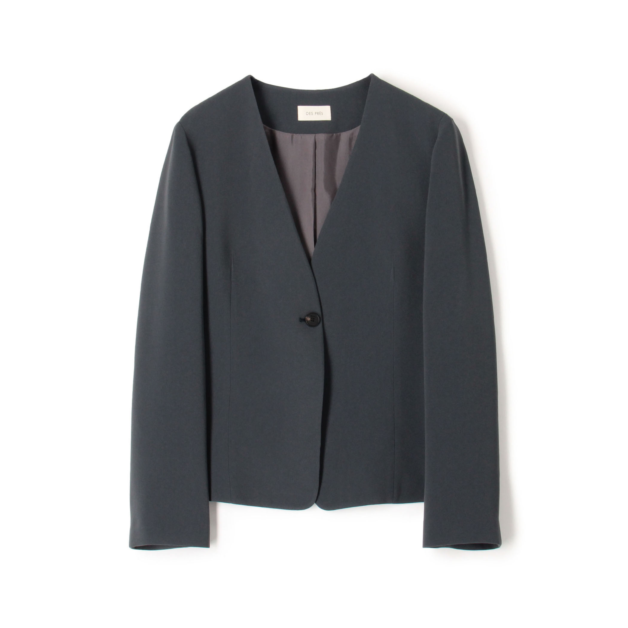 〈DES PRÉS〉ライトダブルクロス ノーカラージャケットは柔らかな風合いで伸縮性のあるストレッチ素材を使用したシリーズ。