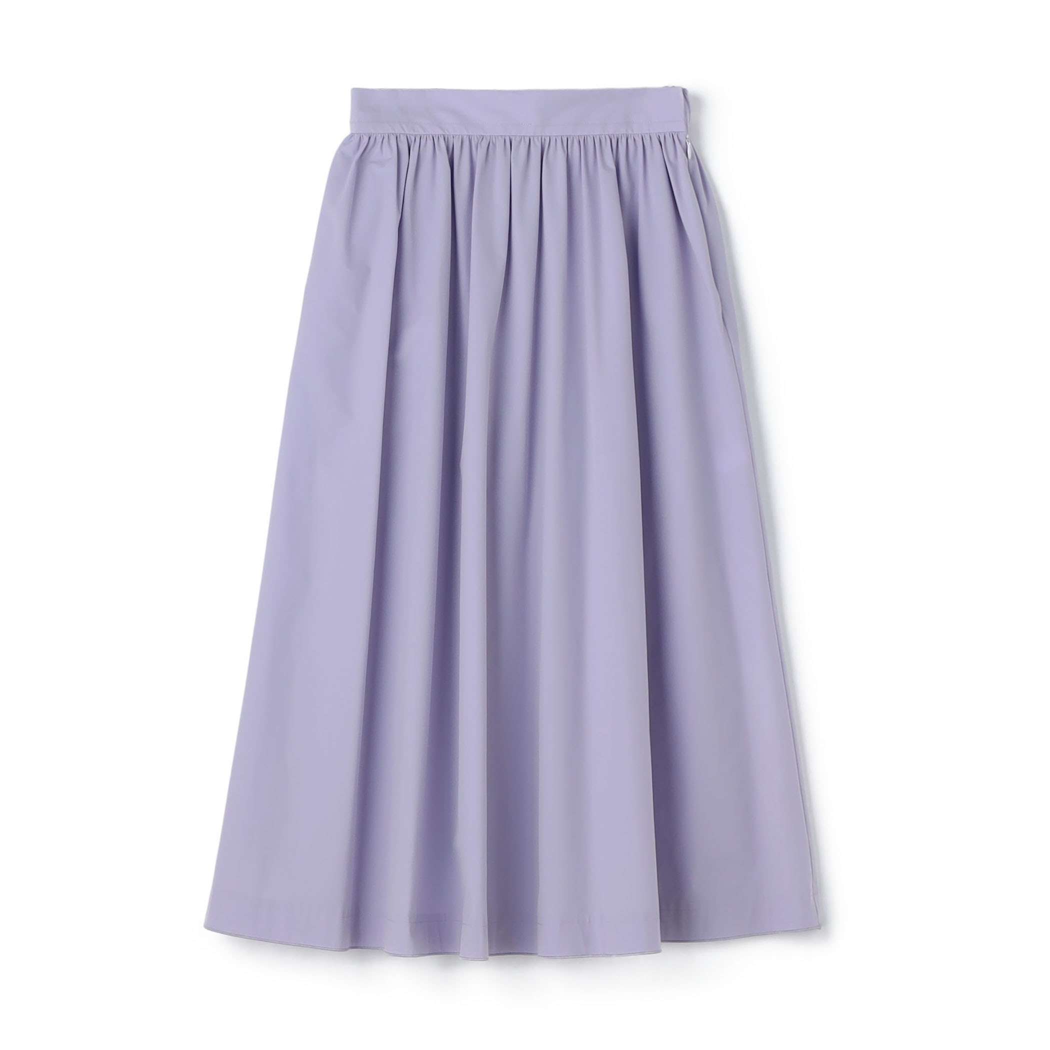 透明感のあるパープルのスカートを合わせ、ジャケットのインナーはニットで少しカジュアルダウン。