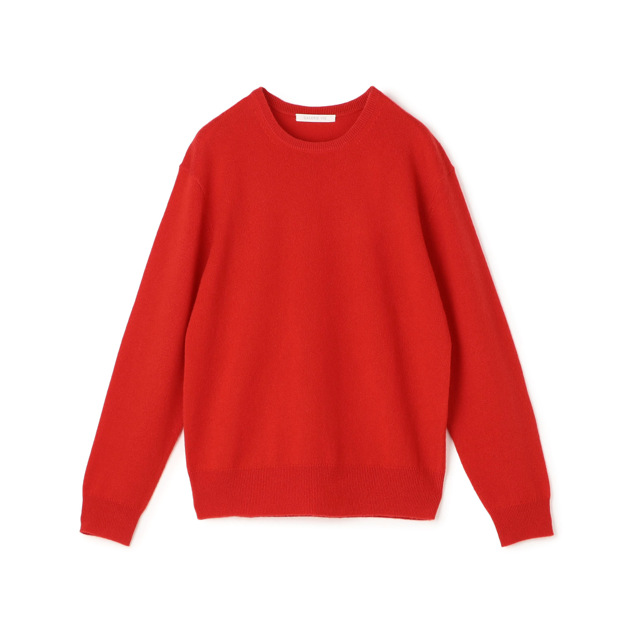 〈GALERIE VIE〉のムートンコートは、ゆったりとしたシルエットで、ヒップが隠れる着丈です。軽い着心地と柔らかいグレーの色味が魅力的な一枚。差し色の赤のニットはカシミヤ100%で肌触りがよく、着続けることでどんどん馴染んでいきます。スッキリとした身幅なのでインナーに着たときにももたつかず、暖かいです。