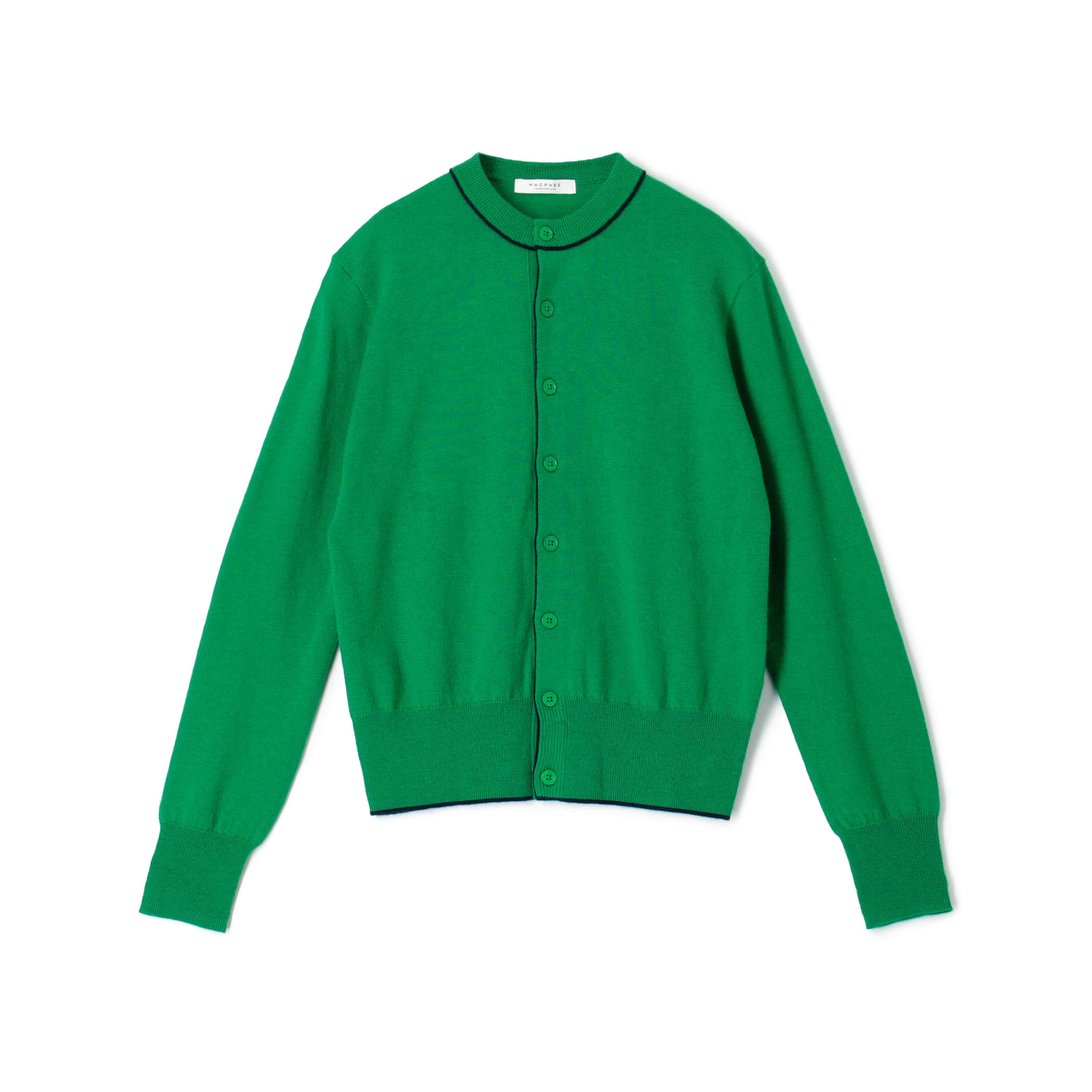 〈MACPHEE〉定番オリジナルのウール糸を使用したプレーンウール クルーネックカーディガンです。