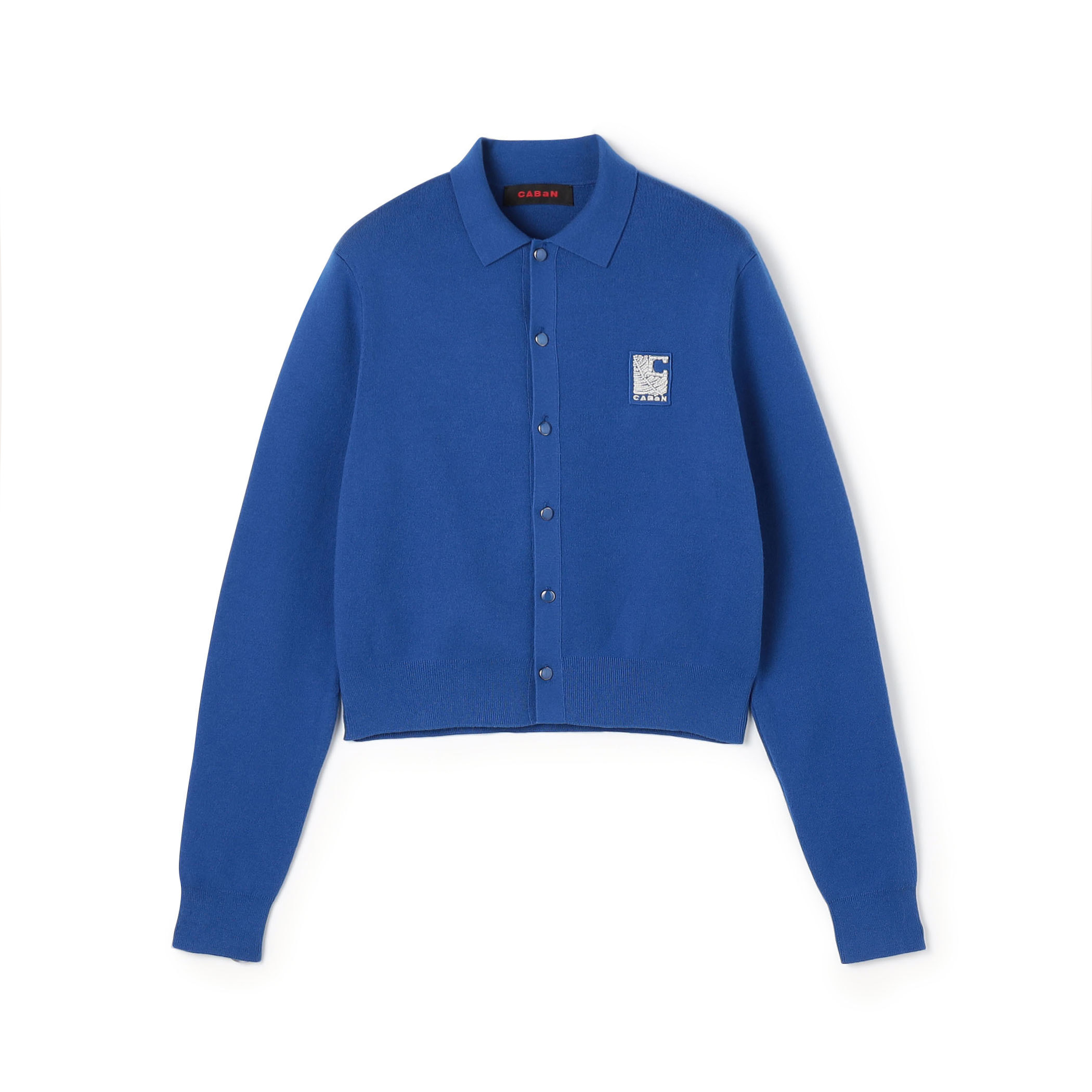 小ぶりなポロ衿とパールロゴが女性らしく上品なポロカーディガン。